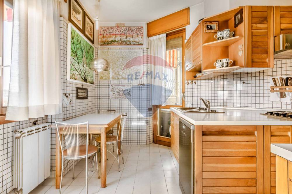 L'ingresso accoglie gli ospiti in un ampio e luminoso soggiorno, caratterizzato da una zona pranzo dedicata perfetta per riunioni familiari e da un accogliente angolo salotto con tavolino e divano, ideale per rilassarsi al termine di una giornata intensa. La cucina abitabile, dotata di pratici piani di lavoro e un tavolo più intimo, è arricchita da un balcone di servizio e da un primo bagno giorno finestrato.