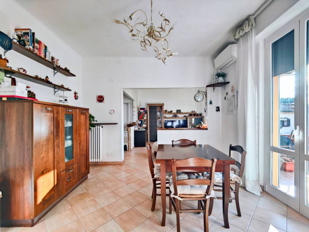 Lingresso conduce a unaccogliente zona living composta da un ampio soggiorno e da una sala da pranzo che si affaccia su uno dei balconi, perfetto per godersi momenti di relax allaperto. Il cucinotto, separato e funzionale, completa la zona giorno con eleganza e praticità.