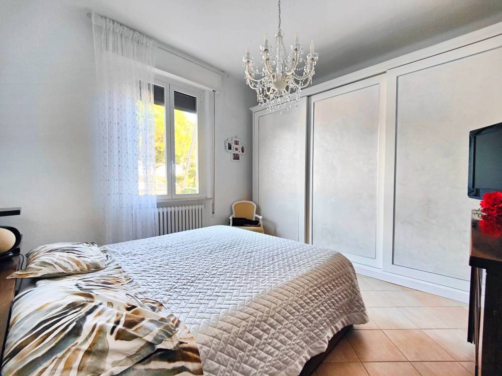 La zona notte offre due camere matrimoniali confortevoli e un bagno finestrato con doccia luminoso e ben rifinito. Una delle camere dispone di accesso diretto al secondo balcone, uno spazio intimo e riservato dove poter godere di piacevoli momenti allaperto.