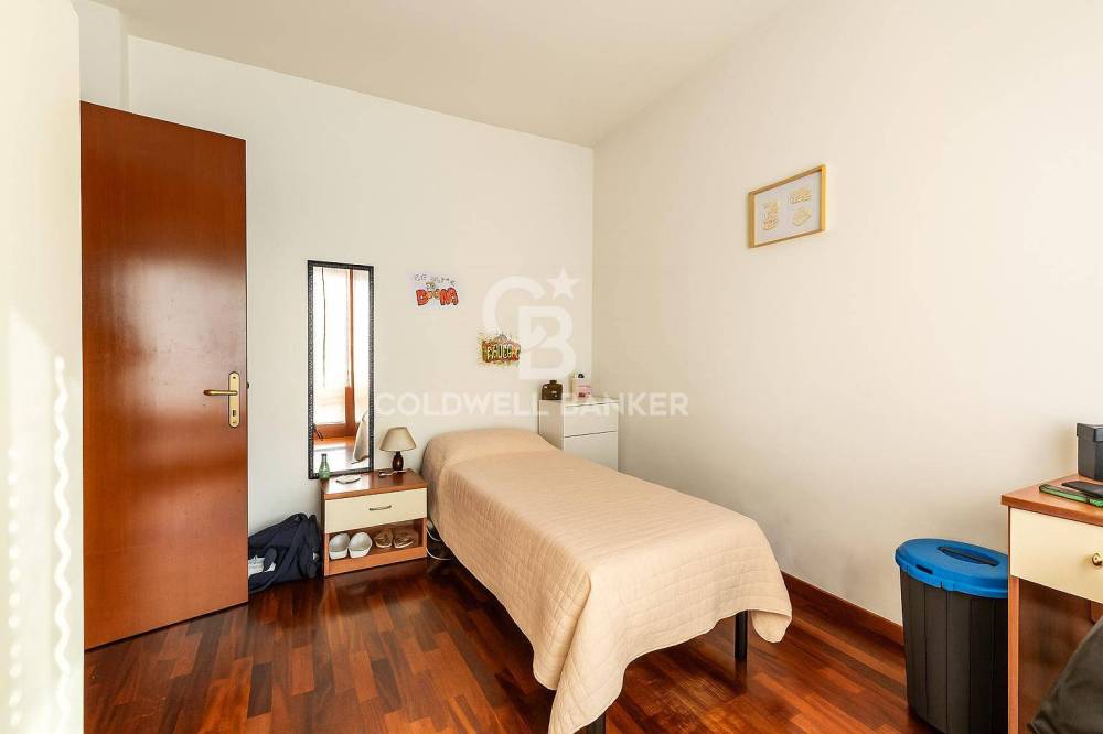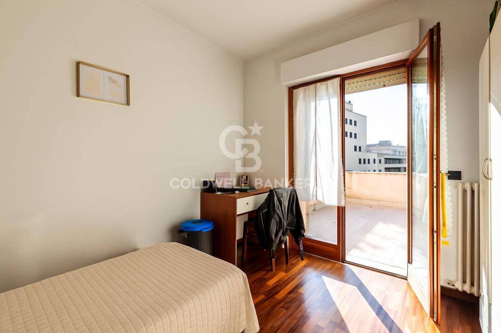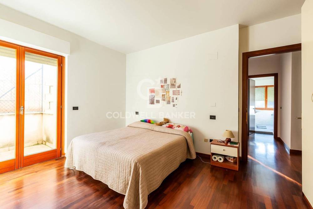 La zona notte si compone di tre camere da letto: una camera matrimoniale con accesso a un piccolo balcone privato e due camere singole, di cui una servita da un ulteriore terrazzo di circa 12 mq.