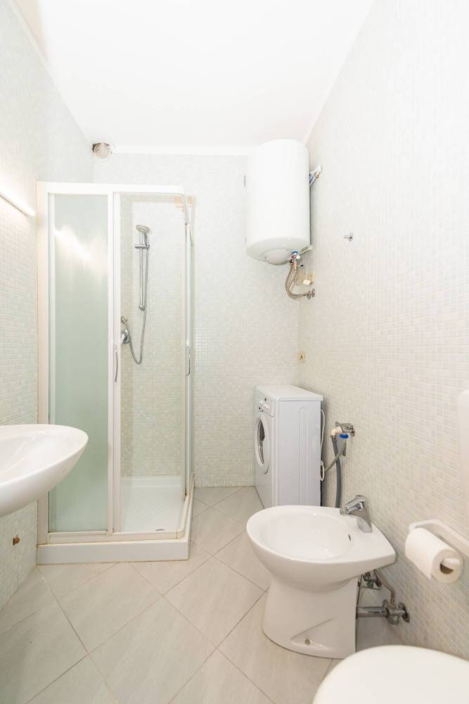 Il bagno, presenta box doccia, lavatrice, scaldabagno per la produzione di acqua calda e sanitari in buono stato. Le finiture chiare contribuiscono a rendere lambiente piacevolmente luminoso.
