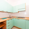 La cucina separata, funzionale e ben conservata, è dotata di piano cottura a gas, lavello e pensili. Unapertura ad arco collega visivamente la zona operativa con il soggiorno, creando un senso di continuità e ariosità. I serramenti in alluminio assicurano isolamento e durata nel tempo.