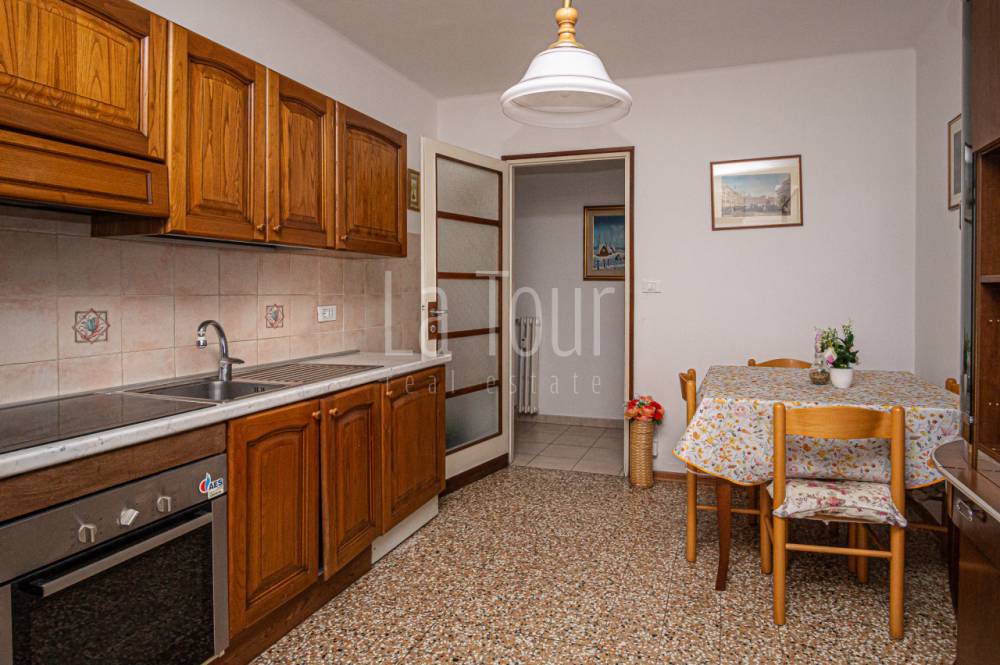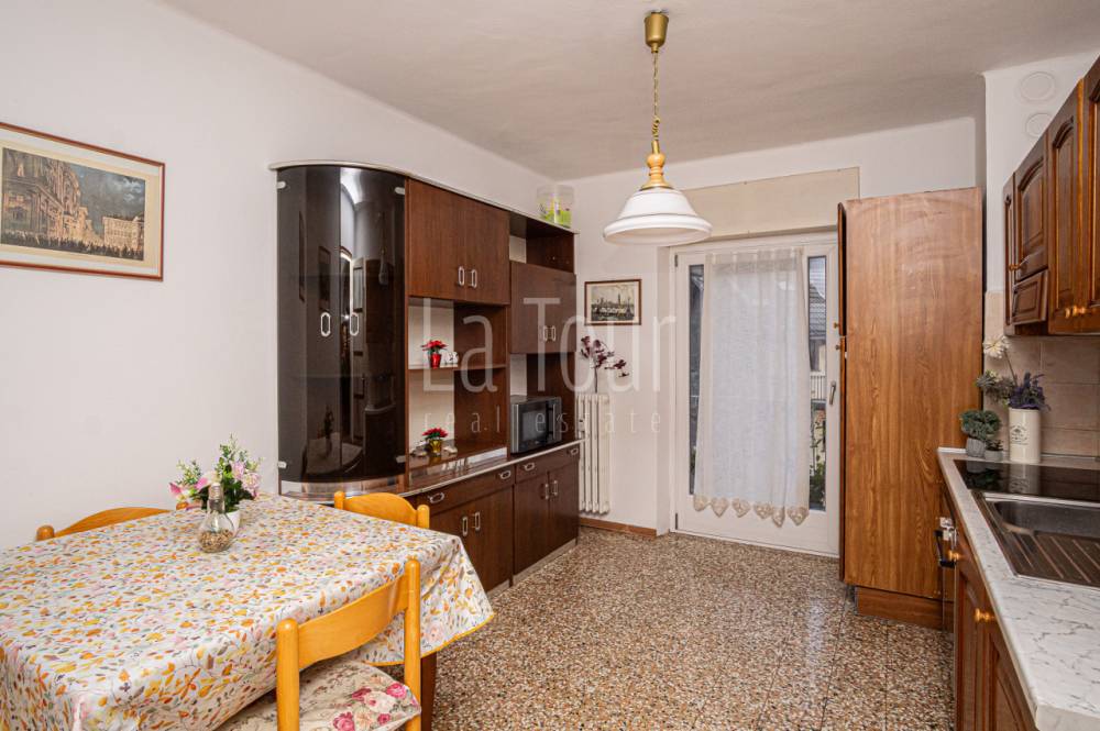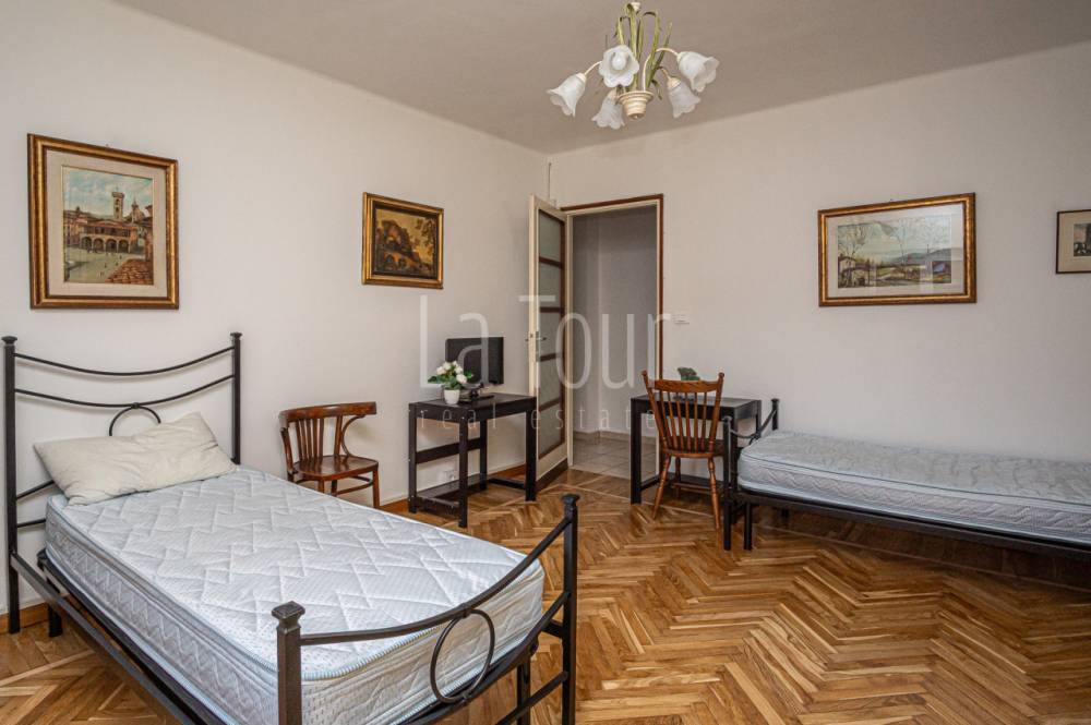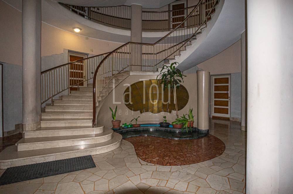 In uno degli edifici più noti e particolari della città, denominato "Condominio Astrum" (Palazzo Stella) per la sua conformazione a quattro "punte" progettata negli anni '50 dallo studio del famoso architetto milanese Giò Ponti, con un vano scale centrale molto importante a servire le abitazioni sviluppate nelle "punte" della stella, proponiamo un trilocale accogliente, di recente parziale ristrutturazione (serramenti, bagno, impianti), in parte arredato. L'appartamento si trova al secondo piano, ovviamente servito da ascensore, ed è composto da un ingresso-corridoio dal quale si accede, in batteria, alla cucina abitabile con balcone, al luminoso salotto centrale, ed infine alla camera da letto con terrazzino e con accanto il bagno dotato di finestra; la proprietà comprende un pratico vano cantina, al piano sotterraneo. La tipologia dell'edificio ed anche dell'appartamento, dotato di finestre particolarmente ampie che consentono un'ottima luminosità degli ambienti, e con alcuni materiali di finitura d'epoca perfettamente conservati (pavimenti in legno posato a spina di pesce nelle camere e graniglia in cucina), spiccatamente personali, conferiscono un carattere particolare e unico a questo alloggio situato in posizione veramente comoda, a pochi passi dal centro storico e dall'ospedale regionale, e con molti negozi e servizi a portata di mano.