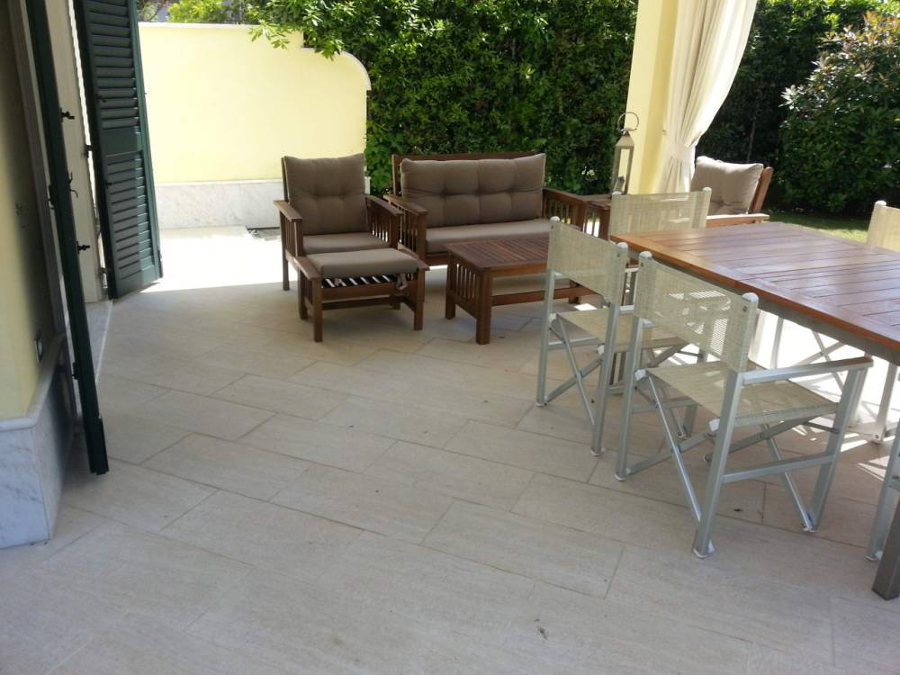 Affitto estivo a Marina di Pietrasanta con piscina privata - Porzione di Villa bifamiliare nuova ristrutturazione per 6 persone in posizione ideale per vicinanza alla spiaggia e ai servizi, costituita da soggiorno, ampia cucina-pranzo, 3 camere, 2 bagni, giardino di 400 mq, completamente arredata con gusto molto raffinato e materiale di alta qualità , ampia veranda, parcheggio, terrazza , Piscina privata Aria condizionata, Tv sat.