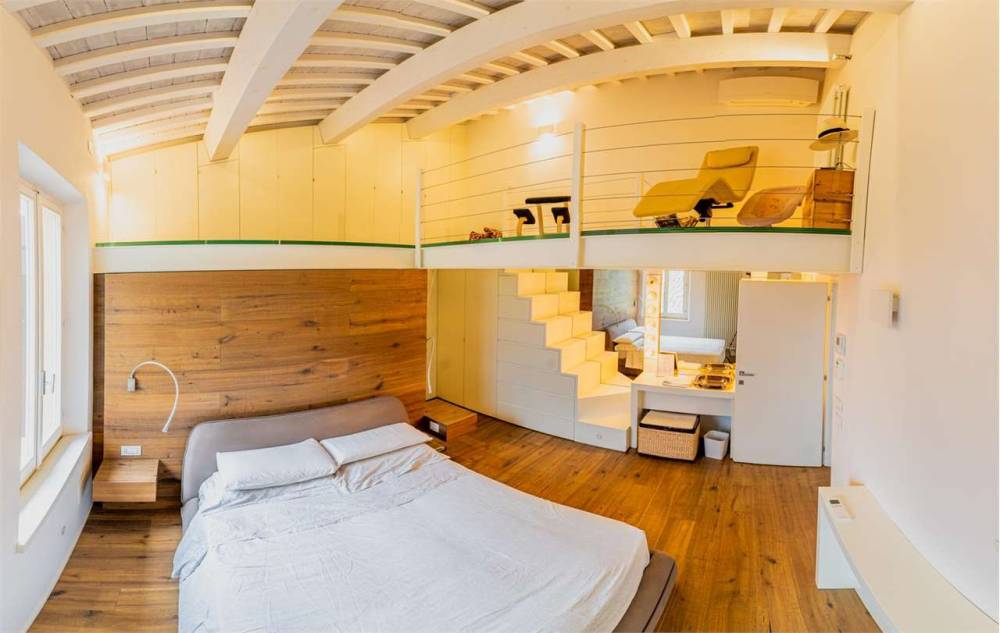 Al piano terra si trova un'ampia camera/studio, ideale come ambiente di lavoro o spazio multifunzionale.