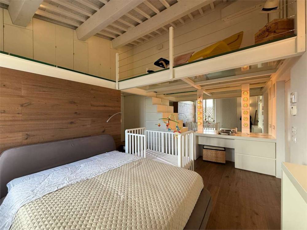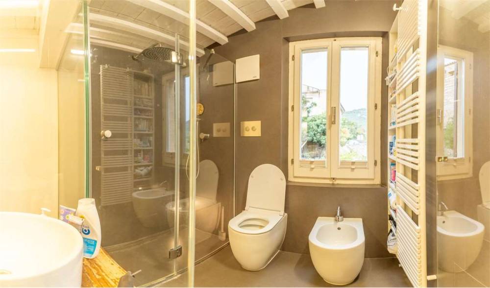 Il secondo piano, impreziosito da soffitti con travi in legno sbiancato a vista, accoglie una grande camera matrimoniale con un suggestivo soppalco, un balcone con una gradevole vista panoramica sulla campagna circostante ed un secondo bagno.