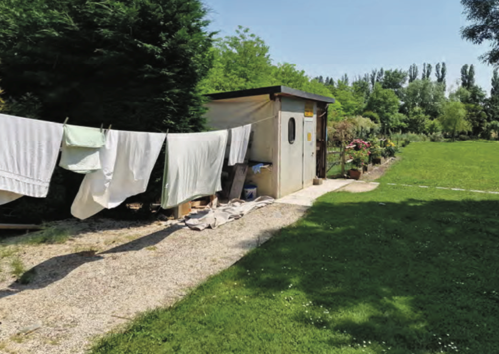 Casa singola a Roncade (TV), località San Cipriano in via Trento Trieste, composta da monolocale soggiorno-cucina, disimpegno, ripostiglio e bagno- lavanderia al piano terra; soffitta al piano primo; magazzino-cantina al piano interrato; annessa corte esclusiva di mq. 891 catastali, nonché appezzamento di terreno di complessivi mq. 1.758 catastali, di fatto adibiti ad area scoperta.