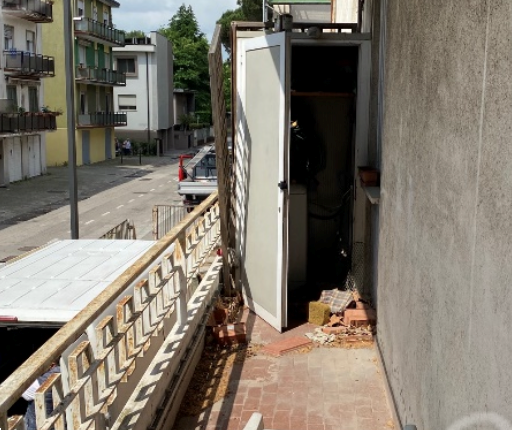 Appartamento al piano primo con annessa autorimessa al piano terra facente parte di fabbricato residenziale che si sviluppa su quattro piani fuori terra situato a Mestre (VE) in via San Fermo. Abitazione composta da un ingresso, ripostiglio, una cucina abitabile, un soggiorno, disimpegno, due camere da letto, un bagno e poggiolo. Al piano terra è presente il garage con ingresso da sud.