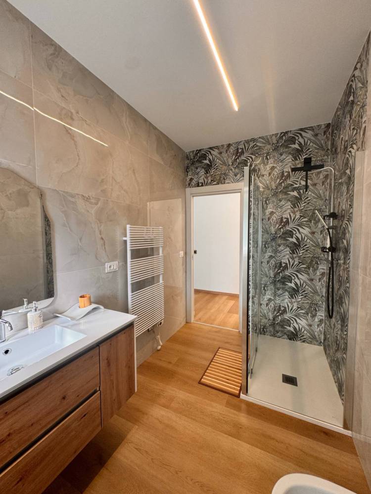 Nella ristrutturazione completa che è stata eseguita sono stati rinnovati tutti gli infissi, i pavimenti, l'impianto idrico ed l'impianto elettrico, è stata istallata una pompa di calore per il riscaldamento e raffrescamento con un impianto a terra e degli split e molte altre lavorazioni tale da rendere questo appartamento unico nel suo genere.