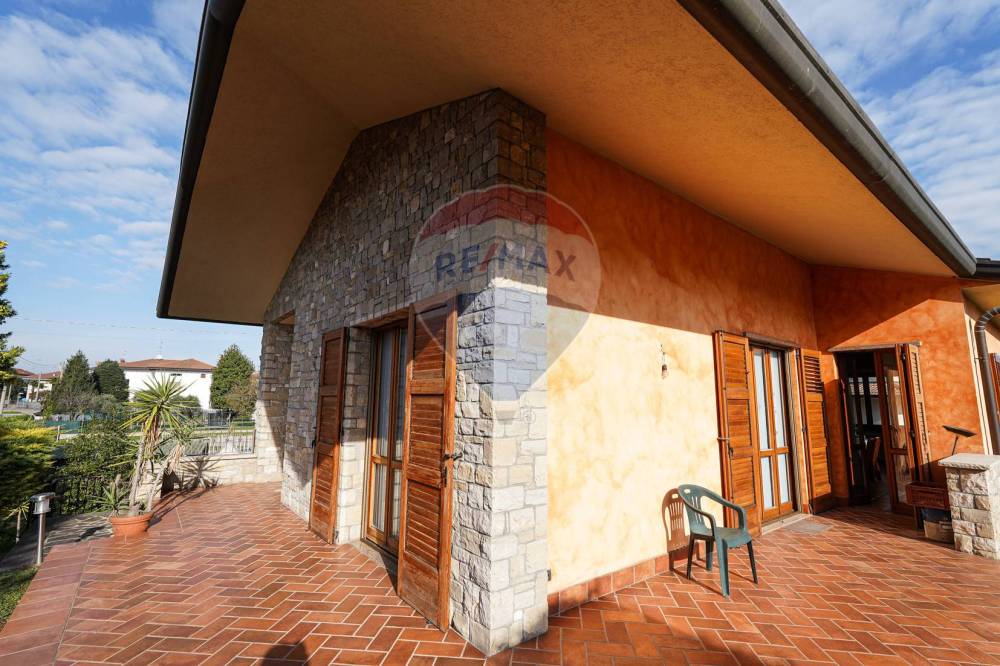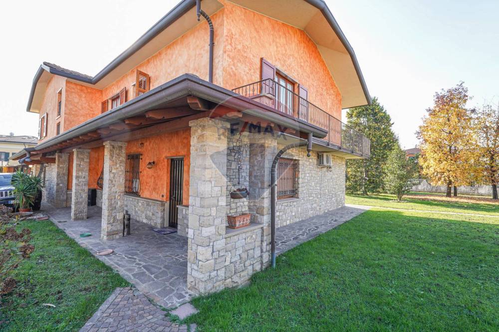 LA TUA VILLA DEI SOGNI. Proponiamo in vendita esclusiva raffinata villa singola composta da due appartamenti. Nel primo appartamento posto al piano terra troviamo un raffinato trilocale composto da soggiorno, cucina abitabile due locali e bagno. A sevizio dell' appartamento un bellissimo giardino pianeggiante. Mediante un ingresso pedonale separato accediamo al piano superiore dove troviamo altro raffinato appartamento composto da grande ingresso, spazioso e luminoso soggiorno con accesso dedicato al grande porticato, immensa cucina abitabile. Attraverso disimpegno accediamo alla zona notte dove troviamo tre grandi camere matrimoniali e bagno. Al piano interrato sono posizionati vari locali a disposizione e grande box per quattro automobili. Se hai un camper c'è posto nel grande viale d'ingresso. Se ami la piscina puoi farla nel grande giardino. L'immobile si distingue per le ottime finiture interne ed esterne, grandi spazi abitativi, giardino ottimamente conservato, ottima esposizione solare, posizione strategica in centro a paese e due minuti da casello autostradale. Vieni a vederla.