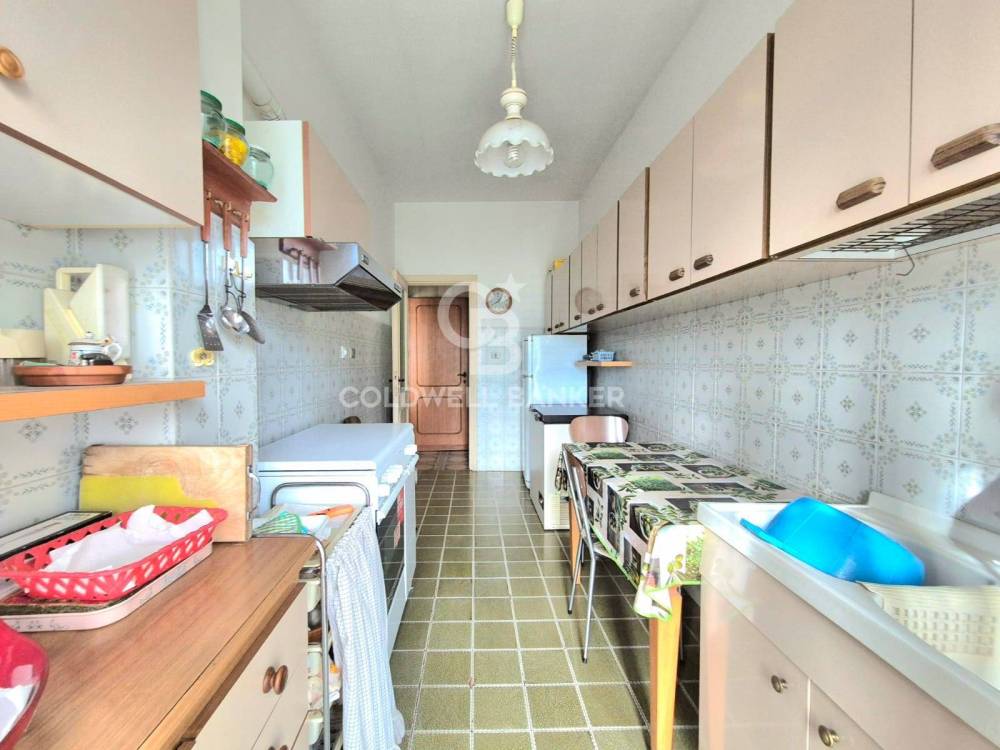L'appartamento si compone di un grande soggiorno, cucina, corridoio con armadio a muro, camera, bagno ed un grande balcone perimetrale da cui si vede anche il mare. Vista la grandezza degli spazi, è facilmente possibile spostare l'angolo cottura in soggiorno ed avere, dove attualmente è la cucina, una seconda camera.
