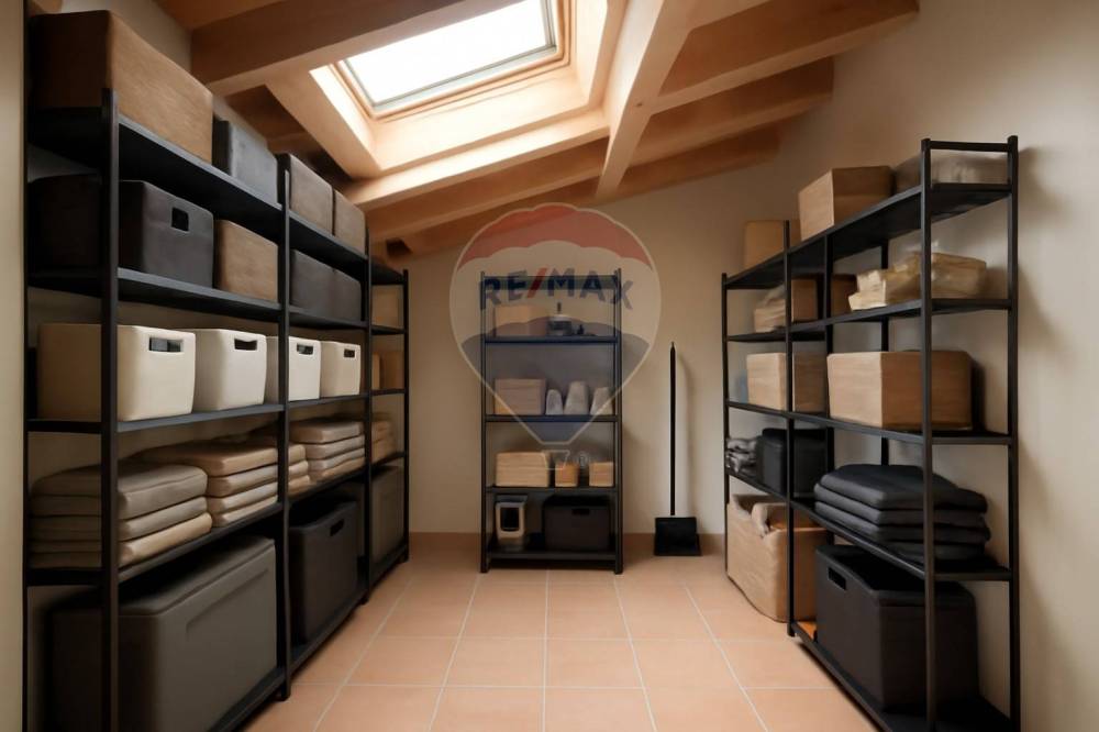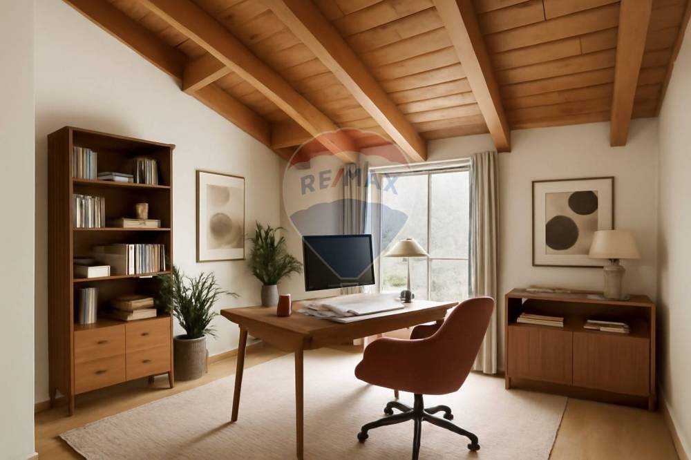 Una scala impreziosita da parete in pietra conduce al secondo e ultimo piano, dove la zona notte si sviluppa con una camera con bagno privato, uno studio con ripostigli e unulteriore camera da letto con cabina armadio. Gli ambienti sono caratterizzati da travi a vista, che conferiscono calore e charme agli spazi.