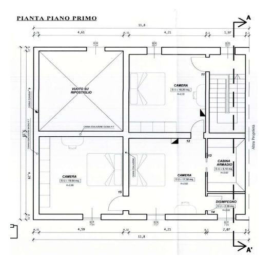 L'unità è disposta su due piani (terra e primo), con cantina e lavanderia di pertinenza al piano seminterrato, ed è composta da ingresso su soggiorno con cucina, bagno e una camera al piano terra, oltre al vano scala di accesso al piano primo con disimpegno, bagno, tre camere di cui una con cabina-armadio collegato a porzione di sottotetto ad uso ripostiglio e con una camera con solaio ribassato e scala interna di collegamento. È compresa un ulteriore porzione di immobile ad uso deposito; oltre ad un appezzamento di terreno agricolo.