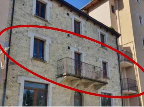 Stabile a Monte Cerignone (PU) in Via Leopardi. Trattasi di palazzina condominiale di tipo mista residenziale-commerciale costituita da cinque negozi e magazzini di pertinenza, otto appartamenti e un locale ristorante che si sviluppa su quattro piani disposta a valle e a delimitazione del borgo di Monte Cerignone. Ad essi corredati vi sono delle aree esterne comuni rappresentate dai marciapiedi a lato della strada a valle verso via Leopardi e a monte verso le mura del Centro Storico della città Feltresca.