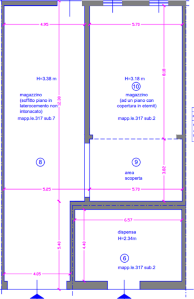 -deposito artigianale formato da un locale ad uso dispensa ed un retrostante magazzino con area scoperta interna;