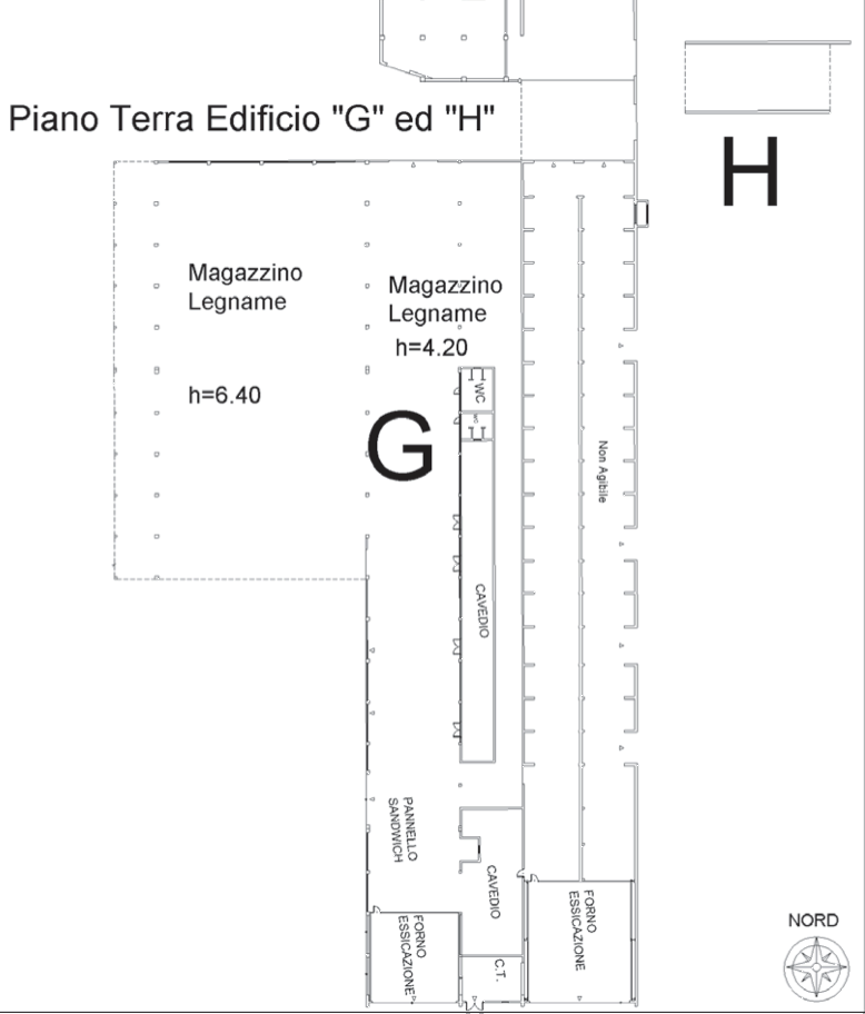 Compendio immobiliare sito in Comune di San Zenone degli Ezzelini (TV) in via Primo Ferraro Primo, costituito da opificio "corpo G" al piano terra, in parte crollato; "corpo H" secondario, al piano terra, in parte crollato; su altro corpo staccato uffici con locali e servizi accessori ai piani sottostrada, terra e primo,