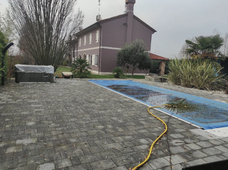 Villa unifamiliare con pertinenziali garage al piano terra, annessa area scoperta esclusiva di 1.407 metri quadri e piscina, situata in Comune di Breda di Piave (TV), località Pero in Strada dei Maretti. Abitazione composta da due portici, ingresso-soggiorno, cucina-sala da pranzo, due disimpegni, lavanderia e bagno al piano terra; due disimpegni, tre camere da letto, guardaroba, bagno, mansarda, due ripostigli e soffitta al piano primo; cantina al piano interrato.
