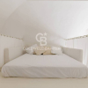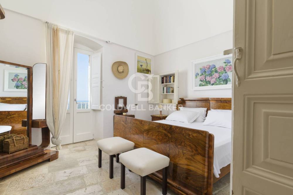 Accedendo dalla porta in legno verde, si viene accolti da un affascinante living pavimentato con antiche chianche, impreziosito da un grande camino a legna e da un soppalco in legno removibile. Da qui si accede a una luminosa camera da letto con volte a carrozza, dalla quale si può ammirare un panorama davvero incantevole.