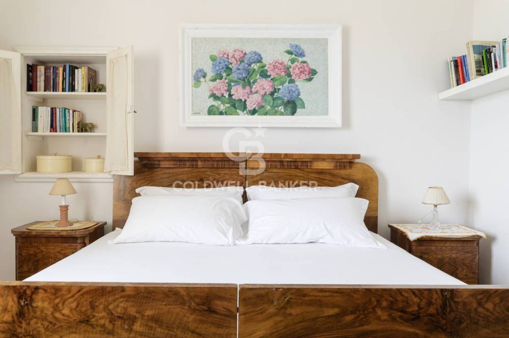 Sul lato opposto del salone si trova una cucina in pietra, piccola ma funzionale e completa di ogni comfort. La zona notte comprende un ripostiglio, una seconda camera da letto con volte a carrozza e un bagno aggiuntivo di generose dimensioni.