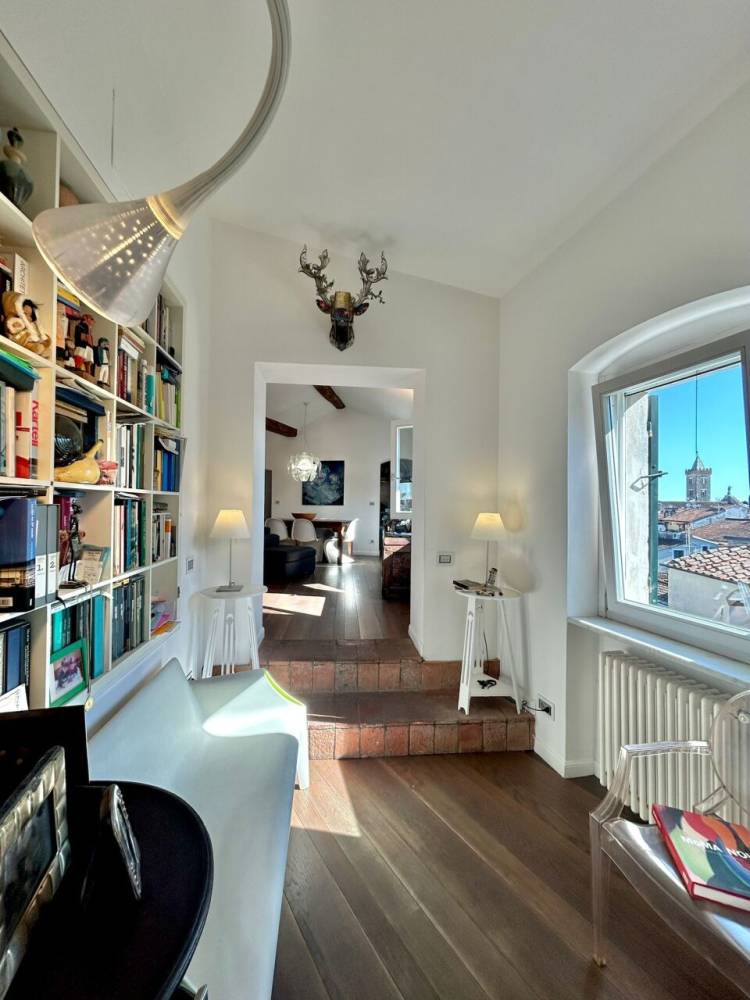 Nel centro storico, vicinanza Piazza Matteotti, signorile appartamento ubicato in antico stabile di pregio storico. L'abitazione è posta al 2° piano ed ultimo, totali mq. 135 completamente ristrutturata ed ottimamente rifinita con particolare cura dei dettagli ed attenzione nella scelta dei materiali, tutti di ottima qualità. Si compone di ingresso, ripostiglio, ampio soggiorno/pranzo, cucinotto, disimpegno, 2 camere da letto e doppi servizi. Bella vista panoramica sulla collina circostante e sul centro. Termoautonomo. Dotato di aria condizionata.