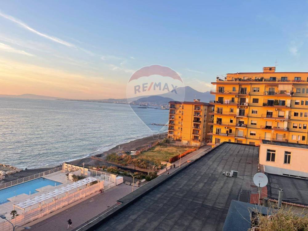 L'appartamento (circa 190mq) gode di spazi sono funzionali e ben divisi, ed è composto da: un ingresso in disimpegno, un corridoio che ci conduce alla zona giorno dove veniamo accolti da un ampio salone dotato di camino per godersi le serate d'inverno in un caldo tepore ed un terrazzo, perfetto per godere del panorama, su tutto il golfo di Napoli, nelle sere calde d'estate, una cucina abitabile e spaziosa, con accesso diretto all'ampio e soleggiato balcone, con affaccio diretto sul Via De Gasperi, tre camere da letto di cui due servite da bagno in camera, un bagno di servizio adibito a lavanderia.