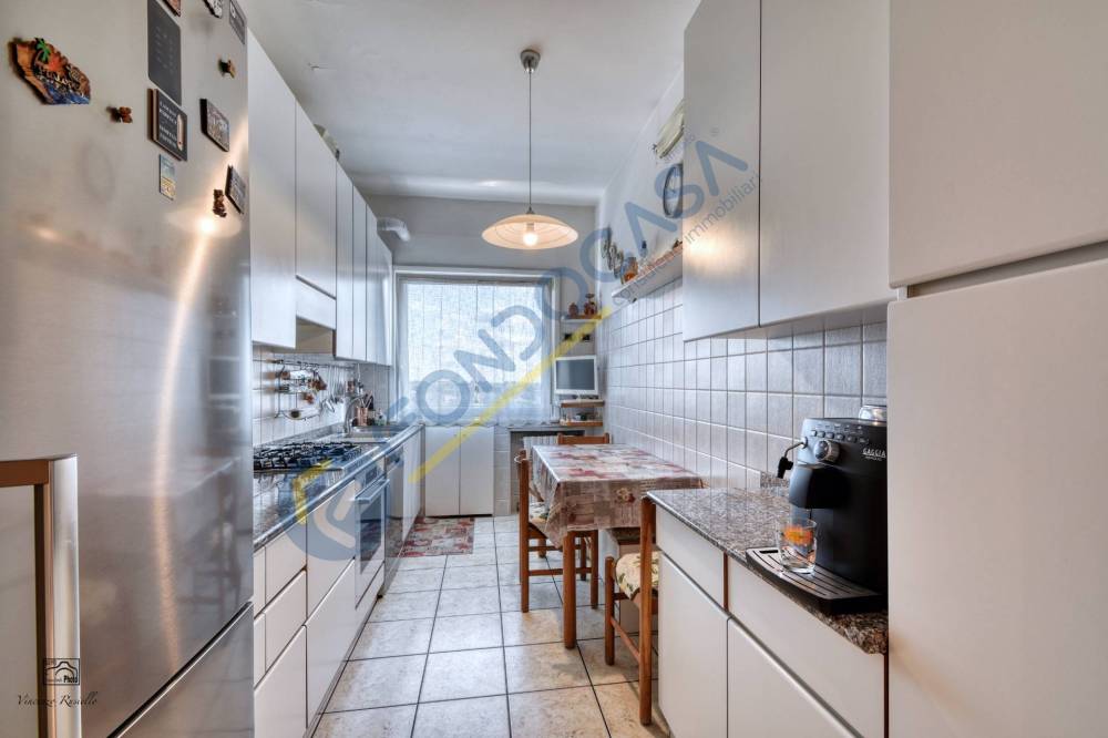 Sita al settimo piano in uno stabile dotato di ascensore, questa soluzione è composta da spazioso ingresso, soggiorno con accesso al balcone, cucina abitabile, due camere matrimoniali con accesso ai rispettivi balconi, bagno finestrato con box doccia e comodo ripostiglio! Le condizioni interne sono buone: gli infissi sono in alluminio con doppio vetro e ribalta, la pavimentazione è in ceramica in tutta la soluzione. Il riscaldamento è centralizzato con termovalvole, l'importo delle spese comprende tutte le spese generiche e fisse ad eccezione della quota del riscaldamento a consumo. E' presente l'impianto di aria condizionata. L'appartamento ha doppia esposizione NORD-EST e SUD-OVEST.