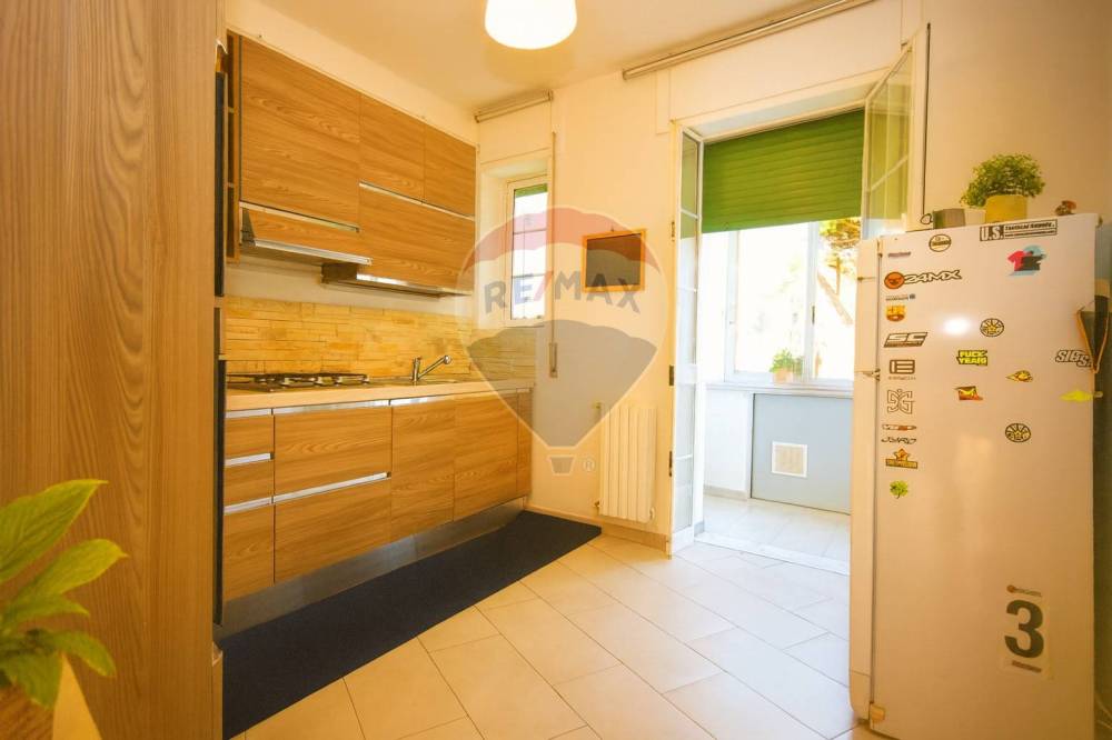 La cucina abitabile si apre su una veranda con vista sul verde, perfetta per la lavanderia e per stendere i panni all'aria e non limitati dall'uso della sola asciugatrice.