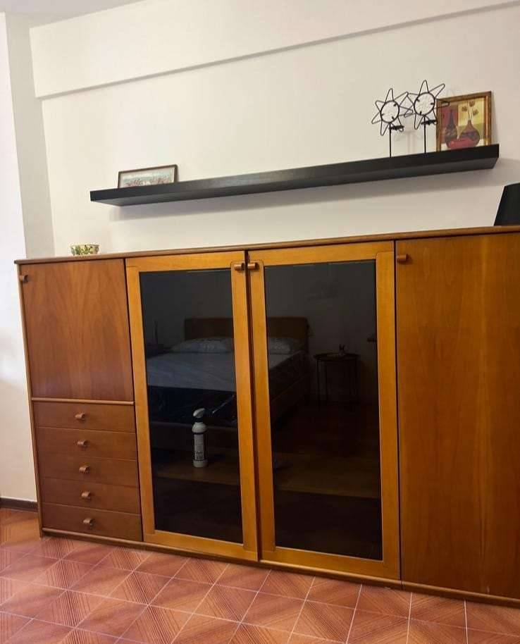La zona è ben servita e l'appartamento è composto da tre camere e due bagni.