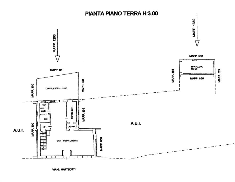 Locale commerciale su due piani ad uso bar-tabaccheria con cortile esclusivo oltre a locale magazzino e locale soffitta situato a Borgo Veneto (TV), località Megliadino San Fidenzio in via G. Matteotti.