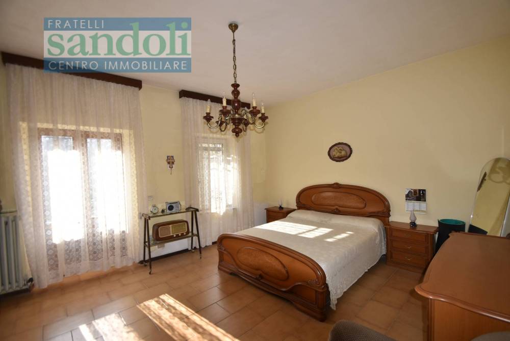 Spostandoci al piano superiore si sviluppa la seconda unità abitativa. Subito dopo l'ingresso si apre l'ampia zona giorno strutturata in salone, tinello e cucina, le tre camere da letto i doppi servizi e l'ampio balcone completano l'appartamento.