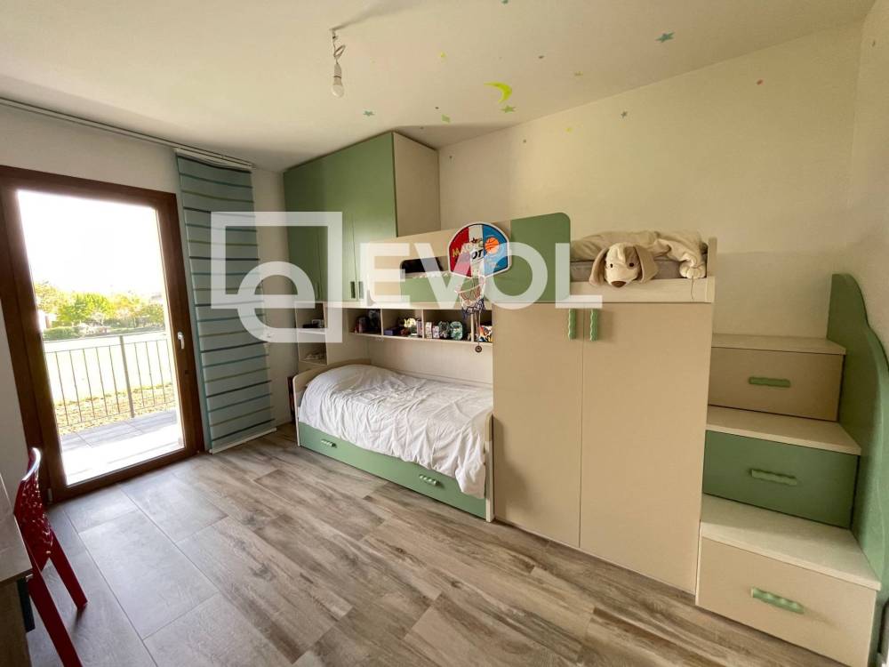 In un contesto residenziale circondato dal verde, da ampi spazi comodi, ideale per le famiglie, vi proponiamo una villa a schiera sviluppata su tre livelli, più l'area del garage. Attraversando il giardino entriamo nella zona giorno di 29 mq, suddiviso in tre zona, soggiorno, area da pranzo e cucina, da qui si può accedere direttamente nell'area attrezzata protetta da tenda da sole. Sempre dal soggiorno si accede al vano scale, dome troviamo il primo dei 3 bagni e la scale che ci porta al primo piano dove ora traviamo una camera da 13 mq, una seconda ora adibita a cabina armadio ed il secondo bagno, la sala ci porta al secondo piano di 26 mq, ad oggi attrezzato come camera da letto e dove troviamo il terzo bagno. Dal vano scale del soggiorno si scende al piano dove troviamo un ampio spazio che si può attrezzare come taverna avendo le predisposizioni per realizzare una cucina, una cantina, un ripostiglio ed il quarto bagno attrezzato come lavanderia. Dalla Taverna si esce nel area comune del garage da cui possiamo entrare nel garage da 24 mq. Il giardino si sviluppa su tre lati, è recintato ed attrezzato con impianto di irrigazione, qui troviamo anche il vano caldaia. La villa a schiera è attrezzata con riscaldamento a pavimento, tre split uno per piano, sistema AVM per il cambio dell'aria interna, la pavimentazione è in gres porcellanato ed al piano terra è di dimensioni 120 x 60 cm., le rubinetterie sono frattelli frattini / paffoni. L'attuale proprietà è il primo ingresso e vende per esigenze di spazi meno ampi. L'immobile è mantenuto in ottime condizioni, pronto ad ospitare una nuova famiglia.