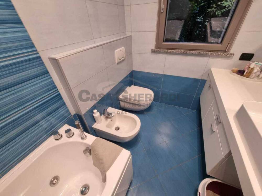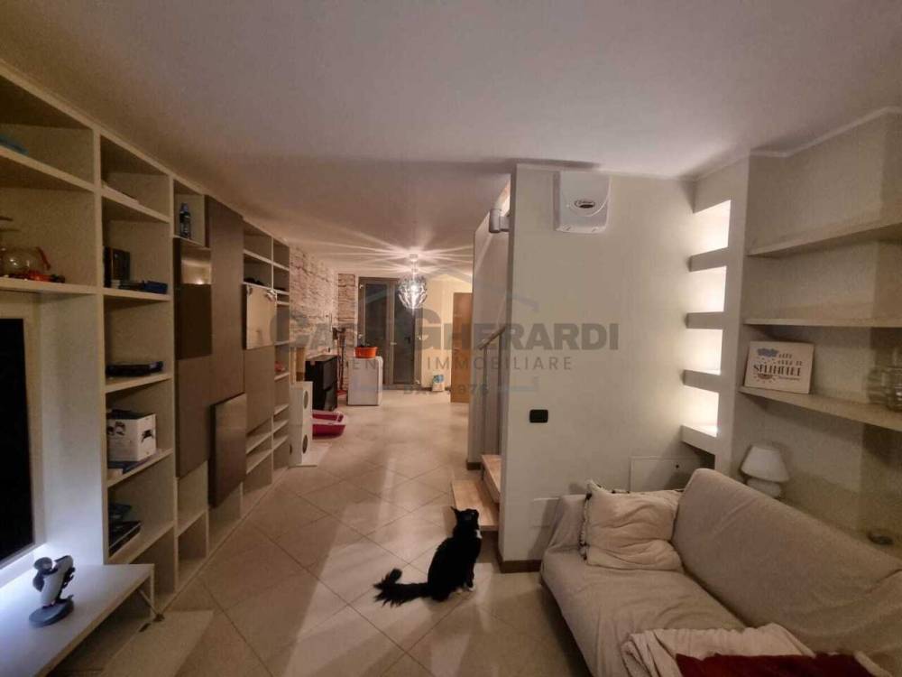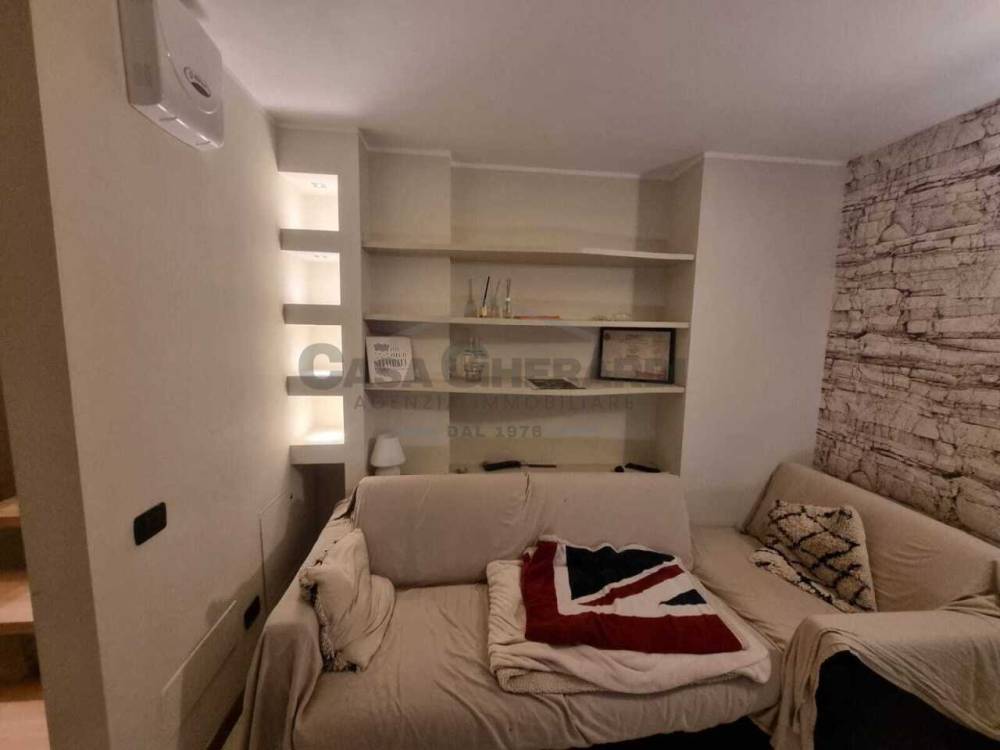 BILOCALE CON TAVERNA E GIARDINO Ponte San Pietro centralissimo e moderno appartamento bilocale in contesto signorile. L'appartamento è composto da ingresso soggiorno con cucina a vista, uscita su giardinetto privato, camera matrimoniale con angolo studio e uscita su altra porzione di giardinetto, bagno ampio con vasca idromassaggio. Da comoda scala interni si accede al piano seminterrato dove troviamo grande taverna, locale lavanderia completo di wc e doccia, comoda intercapedine utilizzabile come cantina, accesso diretto al box singolo ma di generose dimensioni. L'immobile ha il riscaldamento autonomo a pavimento. Nel prezzo è compreso tutto l'arredo esistente di ottima qualità e design. Per le visite potete contattarci direttamente tramite WhatsApp al 334/31.31.229 oppure al fisso allo 035/46.15.15