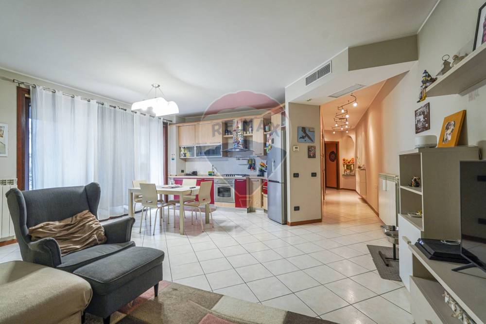 L'appartamento è composto da ingresso nella zona giorno open space di generose dimensioni con zona cucina/pranzo e zona living ben divise, caratterizzata da un'ampia portafinestra scorrevole che garantisce molta luminosità e da accesso al terrazzo vivibile interamente esposto a sud e dotato di tende da sole; tramite il corridoio si accede alla zona notte dove troviamo il primo bagno con vasca e zona lavanderia, cameretta e camera matrimoniale con bagno en suite con box doccia, entrambe le camere hanno una portafinestra per accedere al terrazzo; completa la soluzione un'autorimessa singola al piano interrato.