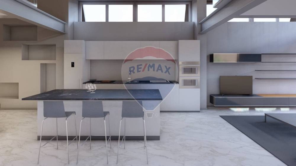 Al piano terra trovano spazio un grande soggiorno con cucina a vista entrambi a doppia altezza che si affacciano su di un giardino privato interno. Oltre a questi ambienti il piano terra è completato da due bagni (di cui uno con finestre sul giardino) e da una camera con cabina armadio.