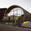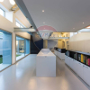 Ledificio si sviluppa su due piani con un ampio spazio a doppia altezza con vetrate a entrambi i livelli.