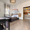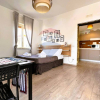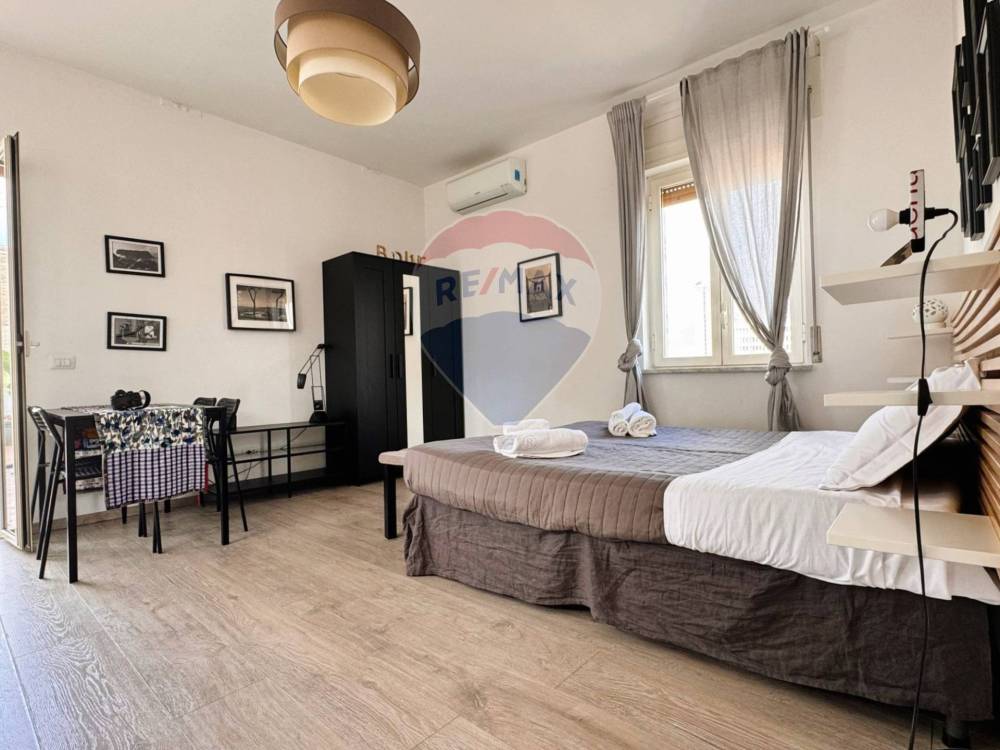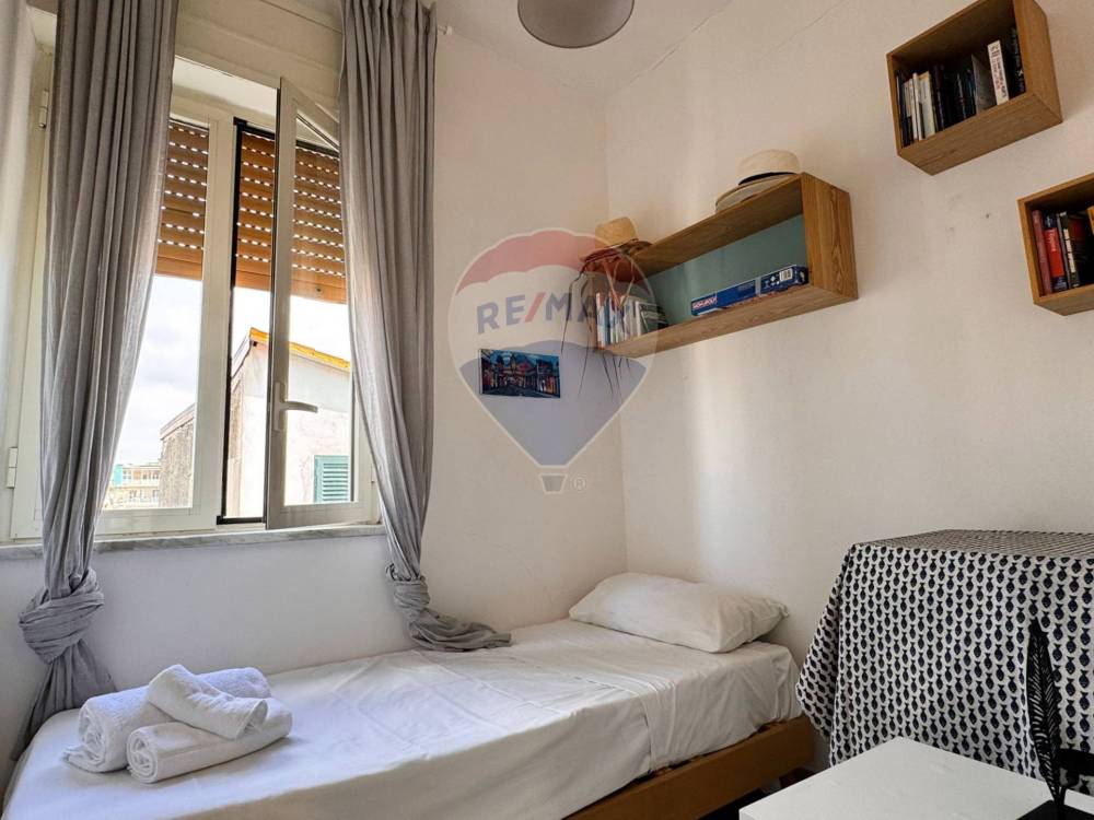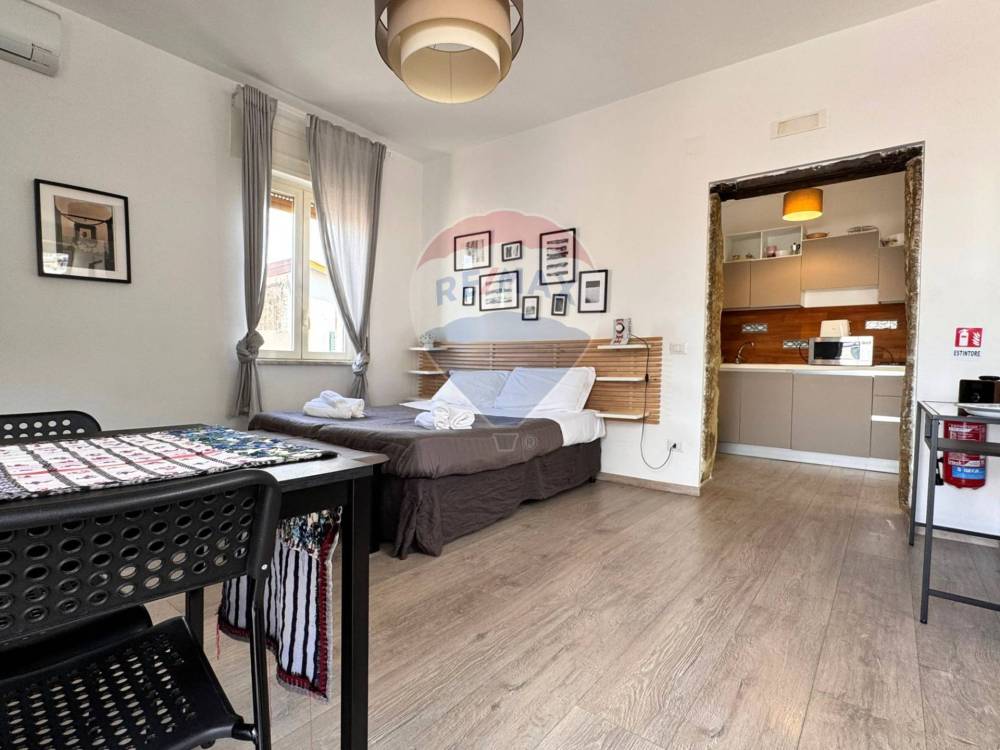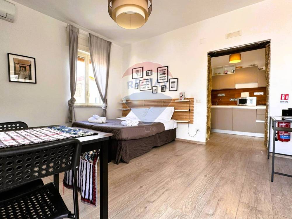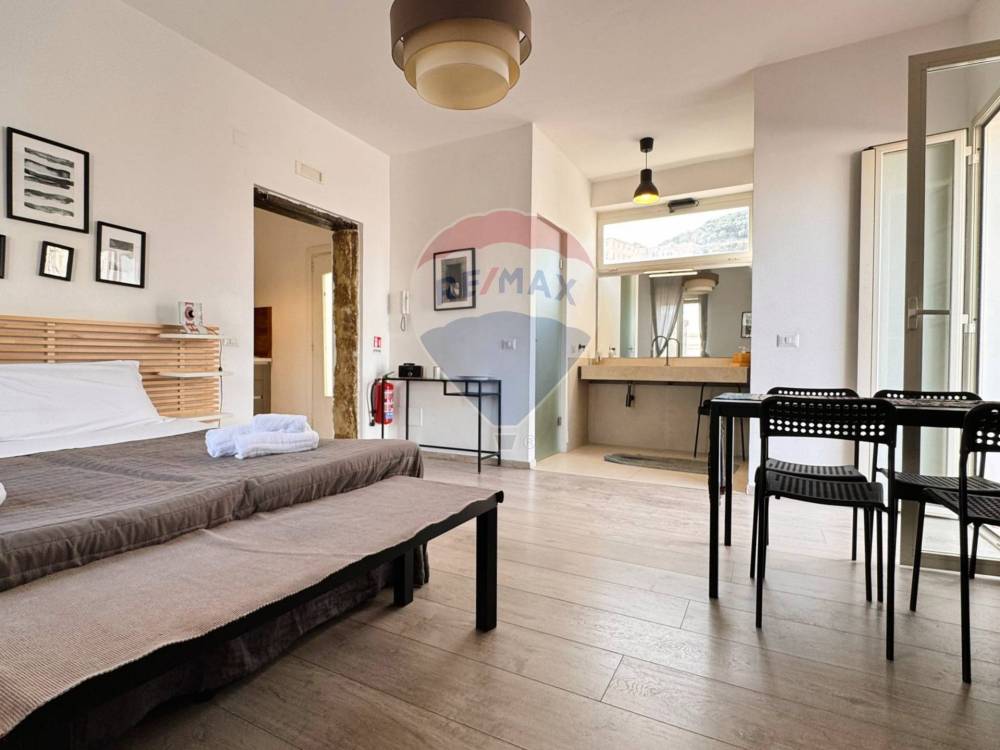 L'abitazione è situata al quinto piano di un edificio caratteristico della zona, l'ingresso è nella cucina, che apre a vista su una grande camera con letto matrimoniale e tavolo e bagno con lavandino a vista e igienici e doccia separati.
