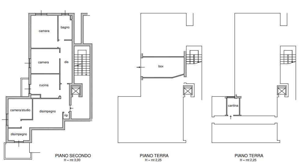 Unità posta al secondo piano di un edificio residenziale oltre cantina e autorimessa (mq. 14) al pian terreno.