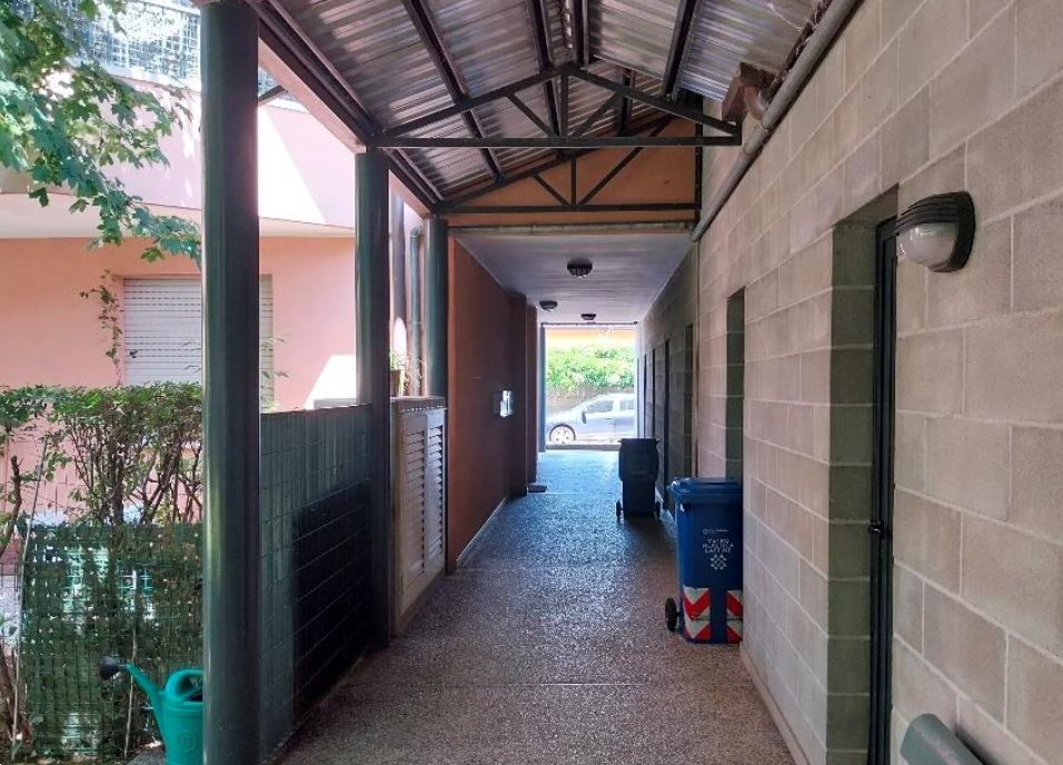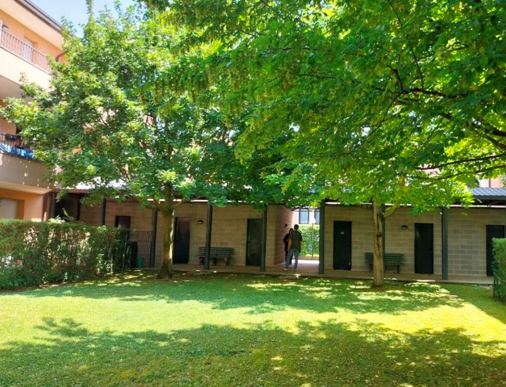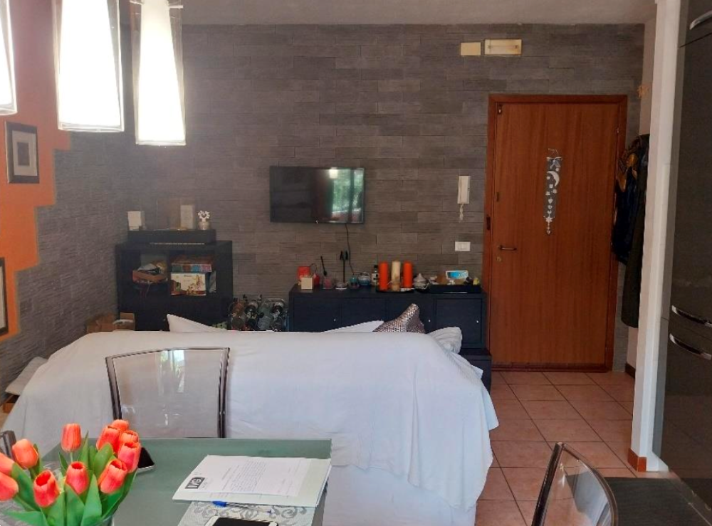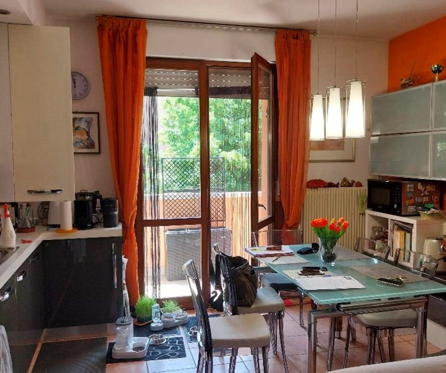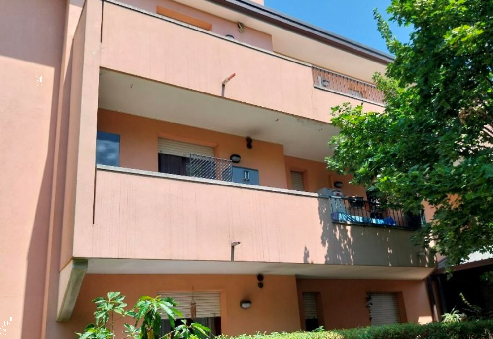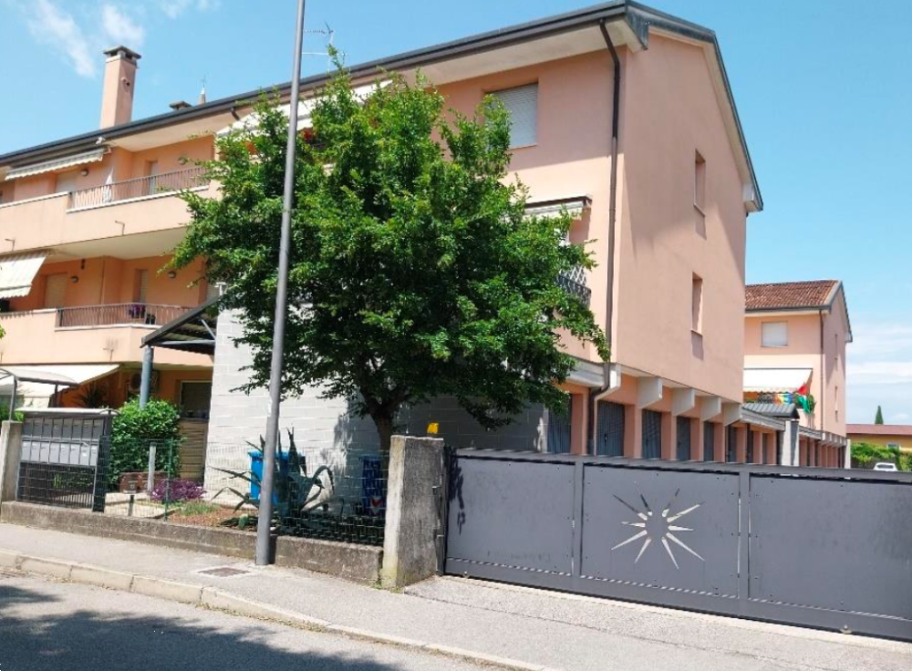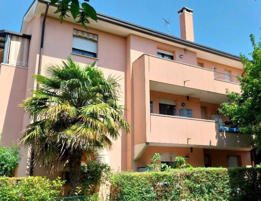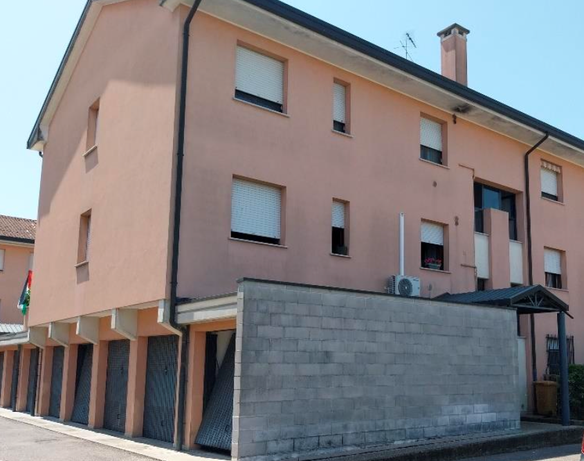 Appartamento al piano primo con annessa autorimessa al piano terra facente parte de Condominio Calmati situato a Treviso (TV) in via Esuli Giuliano Dalmati, composto da un ingresso, un soggiorno con angolo cottura, corridoio, una camera matrimoniale, bagno, una terrazza prospiciente su tutto l'appartamento, che affaccia sul giardino nel lato sud.