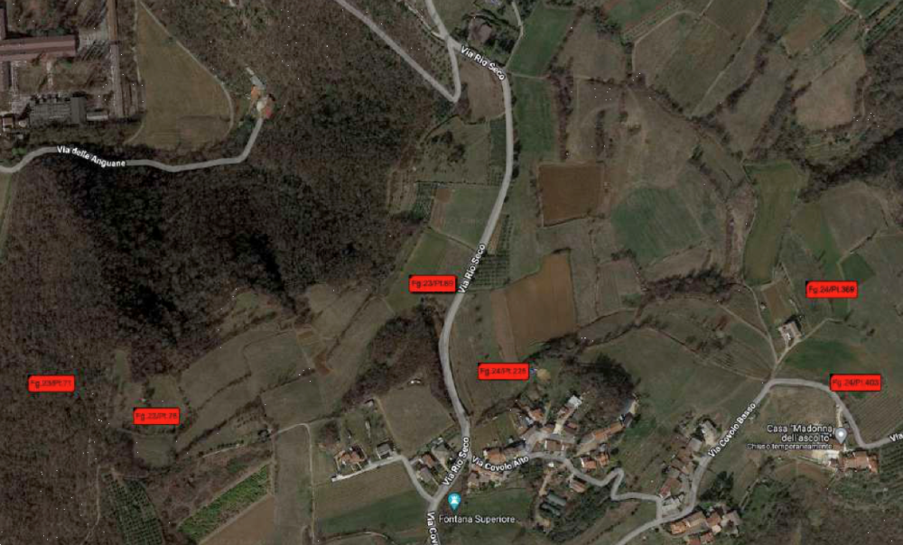 Terreni agricoli in leggera pendenza, privi di recinzioni, di varie dimensioni e di forma irregolare situati a Montecchio Maggiore (VI) in zona periferica a circa 6 km dal centro urbano, per una superficie catastale complessiva di 41.307 metri quadri.