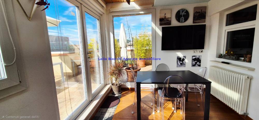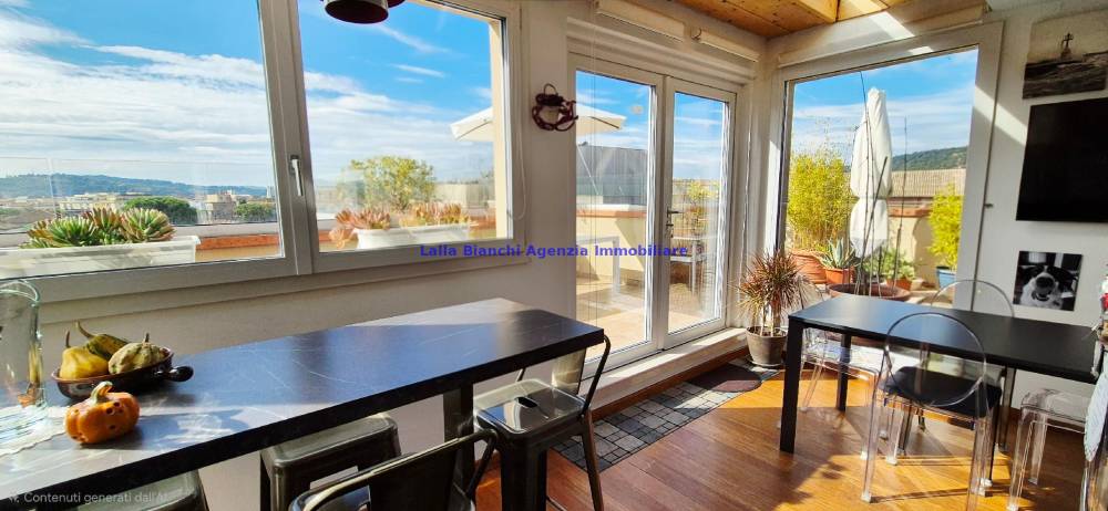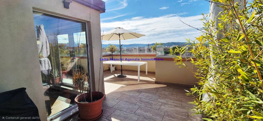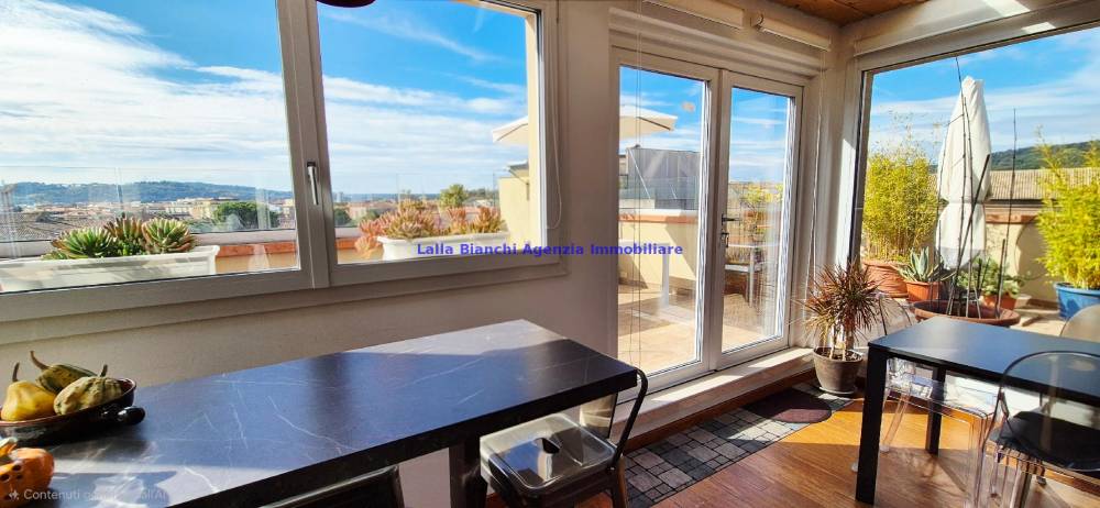 L'immobile è stato totalmente ristrutturato nel 2019 ed è così composto: ingresso sul soggiorno, cucina abitabile con spaziosa dispensa e magnifica vista sui colli e sui tetti della città, con accesso alla grande terrazza alla quale si accede anche dall'ingresso, un disimpegno separa il soggiorno dalla zona notte la quale è composta da 2 camere di cui una matrimoniale con bagno finestrato en-suite e cabina armadio ed una singola, bagno di servizio finestrato accessibile dal disimpegno. Entrambe le camere godono di accesso su seconda terrazza panoramica. L'immobile è dotato di lavanderia e spazioso ripostiglio che alloggia la caldaia.