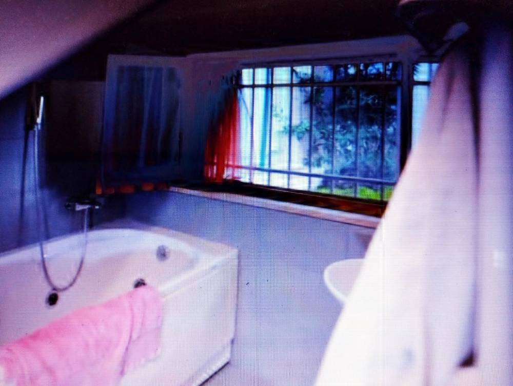 Al PT ingresso, bagno e ripostiglio, con accesso alla zona garage ( mq. 35 ca,attualmente ampia stanza con bella vetrata, utilizzabile come taverna o studio).
