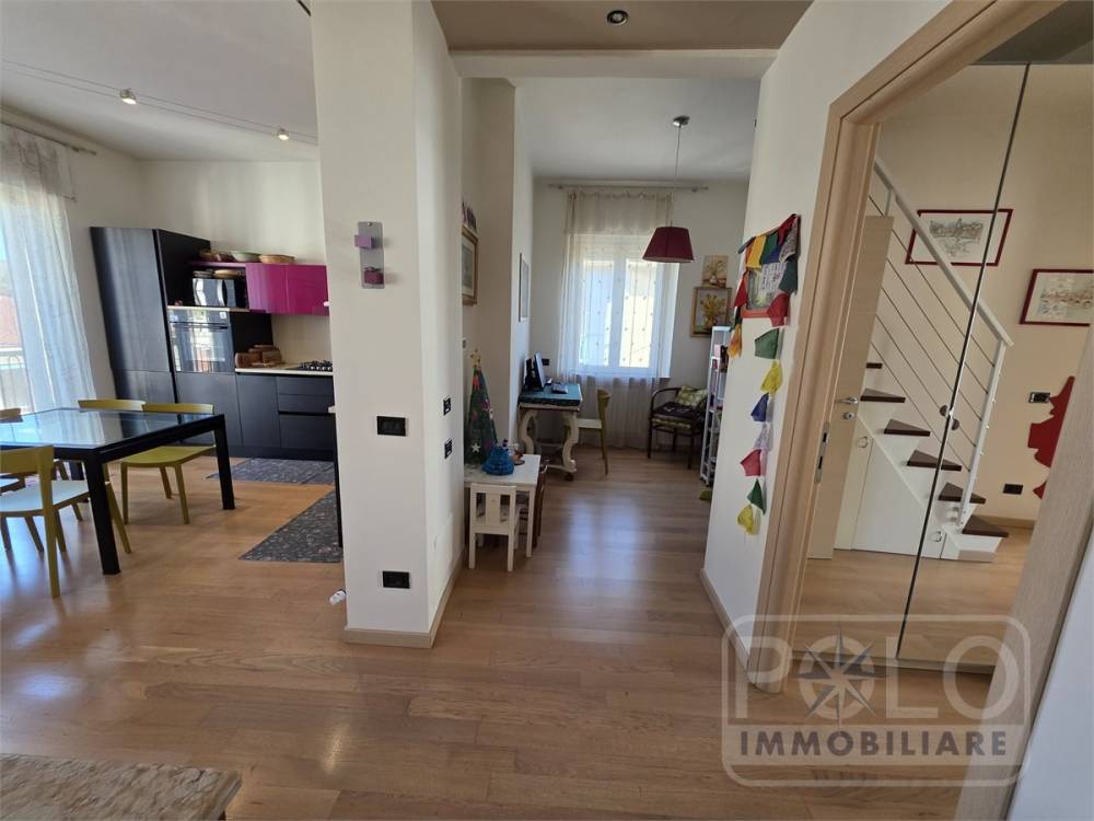 VENDESI IN OPEN HOUSE luminoso appartamento situato al terzo ed ultimo piano, senza ascensore, che offre una posizione dominante e una splendida vista panoramica.nAl piano principale (Terzo Piano), l'ingresso si apre su un accogliente soggiorno open space con angolo cottura, perfetto per la vita sociale. nLa disposizione degli spazi prevede anche uno studio versatile, ideale per lo smart working o come camera per gli ospiti, due camere da letto spaziose e luminose, un bagno moderno e finestrato, due balconi che offrono sfoghi esterni perfetti per una colazione all'aperto.nTramite una scala interna si accede al piano superiore dove troviamo un pratico bagno/lavanderia, che aggiunge grande comodità e locali disbrigo aggiuntivi, perfetti come ripostiglio, cabina armadio o deposito.nI suoi Punti di Forza:nMassima Luminosità: Essendo all'ultimo piano, gode di luce naturale tutto il giorno.nVista Panoramica: Affacci aperti e panoramici.nZona Servita: Posizione strategica comoda a tutti i servizi essenziali (negozi, trasporti, scuole).nDoppi Servizi: Due bagni per il massimo comfort abitativo.nE' POSSIBILE PARTECIPARE ALL'OPEN HOUSE PREVIO APPUNTAMENTO.n