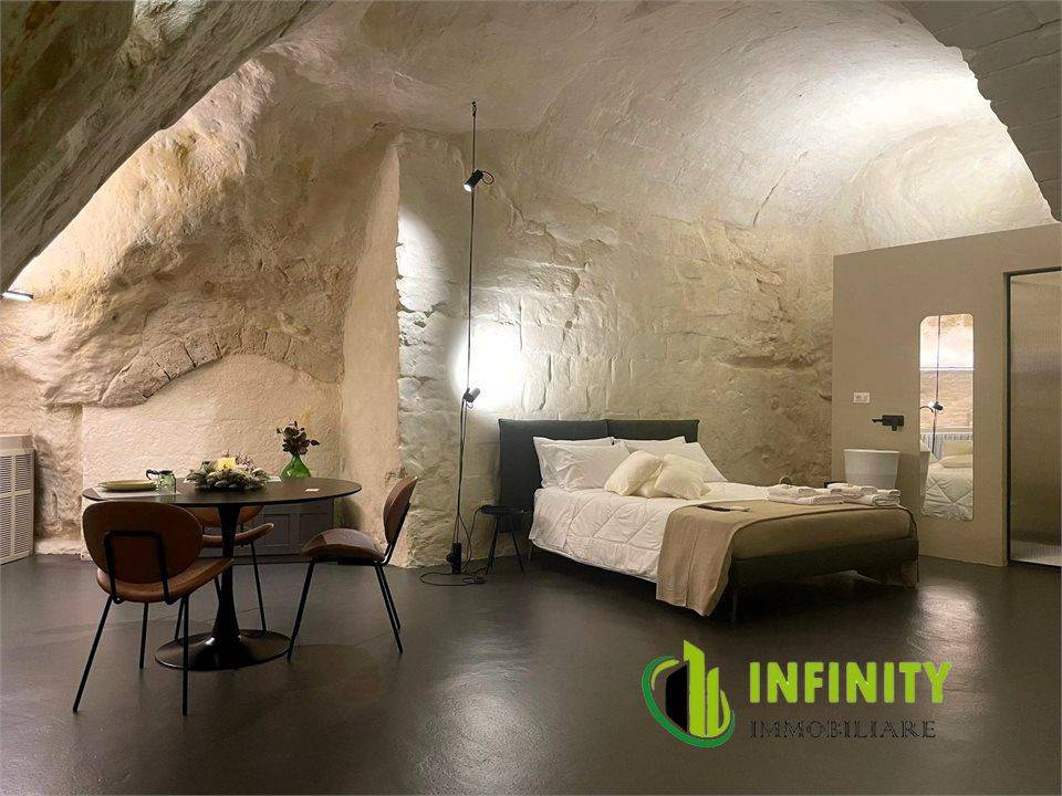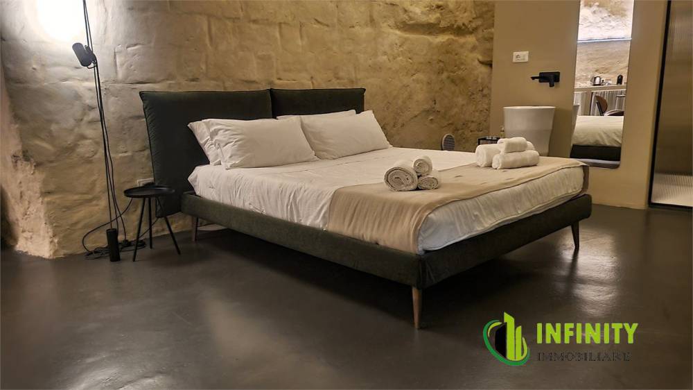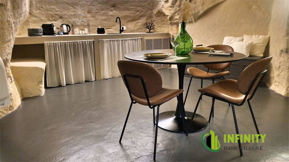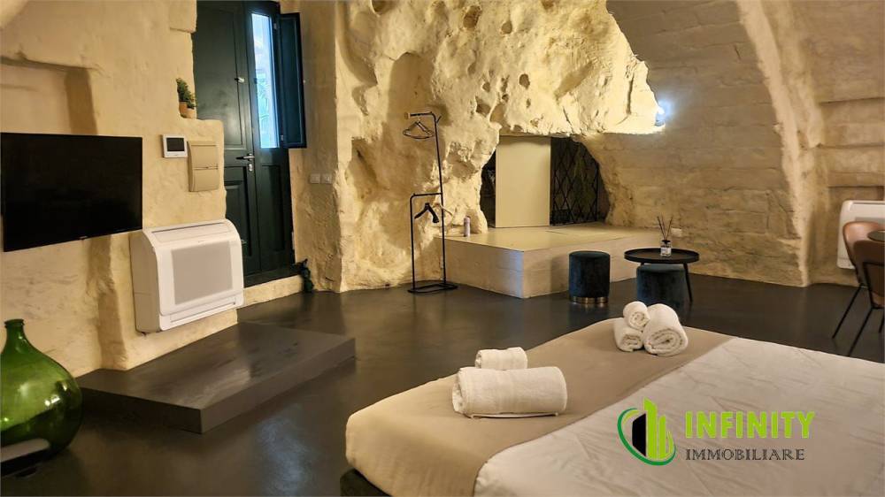 L'agenzia immobiliare Infinity di Matera propone in vendita SPLENDIDA SUITE, completamente ristrutturata, situata nel cuore dei Sassi e più precisamente nel rione Pianelle, a due passi da piazza San Pietro Caveoso, finemente arredata rimarcando la tipicità dei Sassi di Matera. Questo splendido appartamento è l'ideale per qualsiasi tipologia di viaggiatori. Si trova al piano terra con ingresso indipendente ed è perfetta per visitare a piedi il cuore della città.nI principali luoghi di interesse sono tutti intorno all'appartamento, facilmente raggiungibili a piedi in pochi minuti.nL'appartamento è stato completamente ristrutturato e finemente arredato ed è dotato di Porta Blindata e videocitofono.nAl suo ingresso si trova una confortevole zona living - open space in cui è presente un tavolo da pranzo con tre sedie e una Smart-TV.nE' presente un bancone con lavello, bollitore, macchinetta del caffè, ed e' presente inoltre un letto matrimoniale Queen-Size in memory foam, corredato da appendiabiti.nIl bagno dispone di box doccia, lavandino, wc, asciugacapelli. nLa casa è climatizzata con un sistema di riscaldamento/raffrescamento autonomo, rimanendo comunque molto fresca d'estate grazie alla sua esposizione ed alla posizione strategica.nE' presente la fibra ottica che rende la connessione Wi-Fi particolarmente veloce e perfetta per lo smart working.nnNulla è lasciato al caso: tutto rispetta i canoni di tipicità, eleganza e cura dei dettagli. Non sono previste spese condominiali.nnnRichiesta Euro 200.000.nnnNon perdere l'opportunità di possedere questa splendida SUITE, contattaci oggi stesso per organizzare un incontro.nnUlteriori informazioni aggiuntive saranno fornite tramite il numero 3295821208 delle 9.30 alle 13 e dalle 16.30 alle 19.30.n - Maggiori Dettagli: Insonorizzazione, Porta blindata, Climatizzato