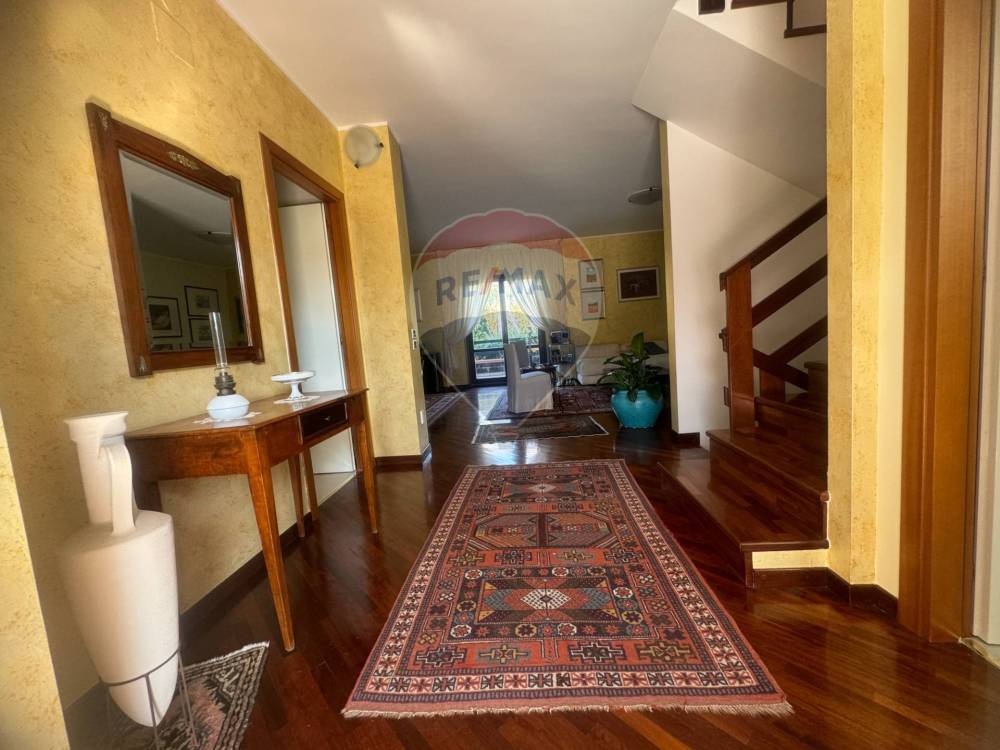 Una raffinata scala in legno collega i vari ambienti tutti accuratamente rifiniti.