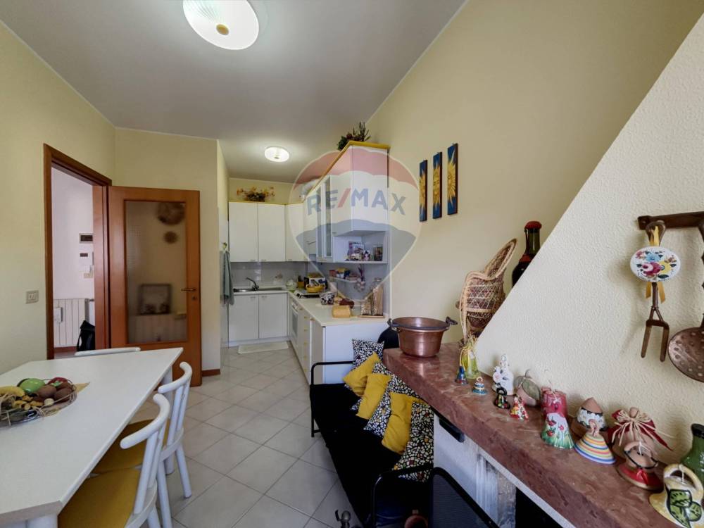 La cucina, ben organizzata, è spaziosa per poter ospitare comodamente una tavola per sei persone, gode di un caminetto e di un balcone.