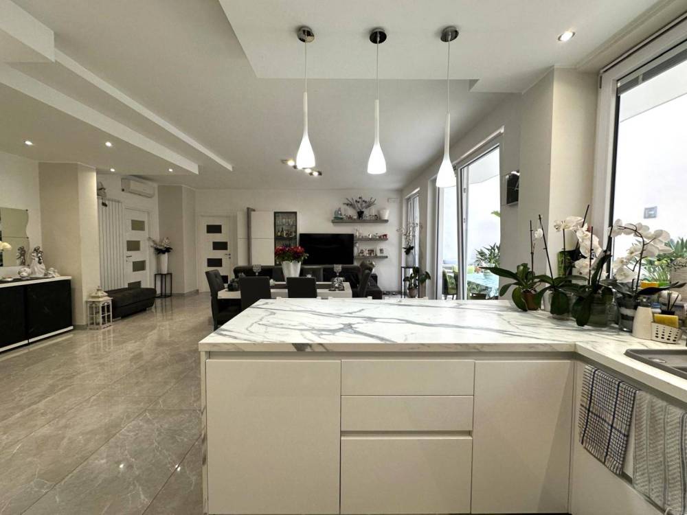 ingresso su grandissimo open space con zona soggiorno-relax e zona pranzo comodissima con penisola;