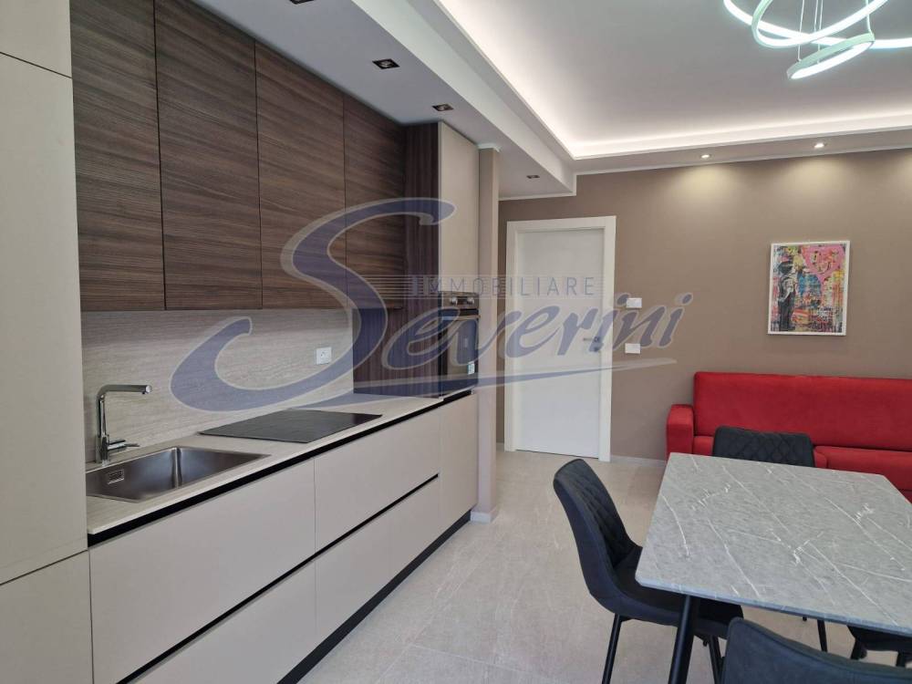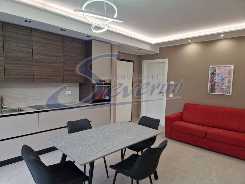 Ampio open-space living con cucina a vista, affacciato su un terrazzo panoramico ideale per dinner parties e momenti di relax.