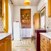 Attraverso la scalinata interna si raggiunge lappartamento posto al primo piano. Lingresso si apre su un corridoio che conduce al primo soggiorno con camino e cucinotto, dal quale si accede alla terrazza di circa 50 mq. Proseguendo si incontra un secondo soggiorno, più ampio e luminoso, e successivamente la zona notte composta da tre camere (due matrimoniali e una singola), un bagno di servizio con vasca e un bagno privato con doccia allinterno di una delle camere matrimoniali. La pavimentazione è in marmo e granito, il riscaldamento è garantito da caldaia a metano con radiatori in ghisa, mentre le finestre sono in legno vetro singolo con tapparelle.