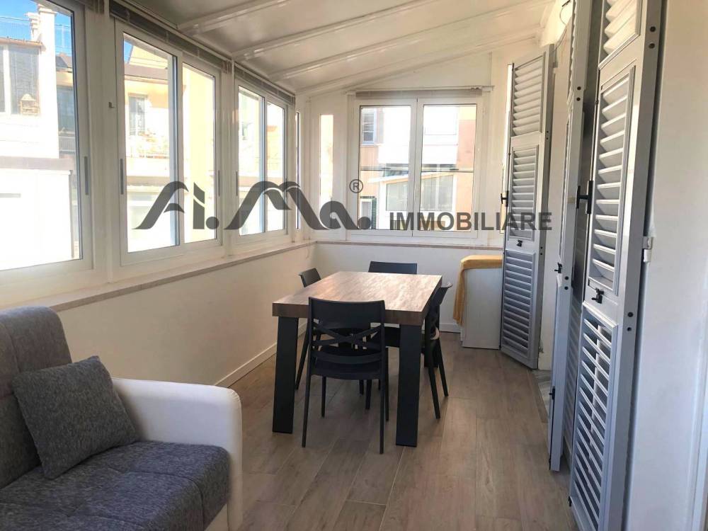 Posto all' ottavo piano con ascensore si presenta con ingresso in zona unica notte/giorno, bagno, ripostiglio e unampia zona relax collocata in veranda con divano e tavolo da pranzo.