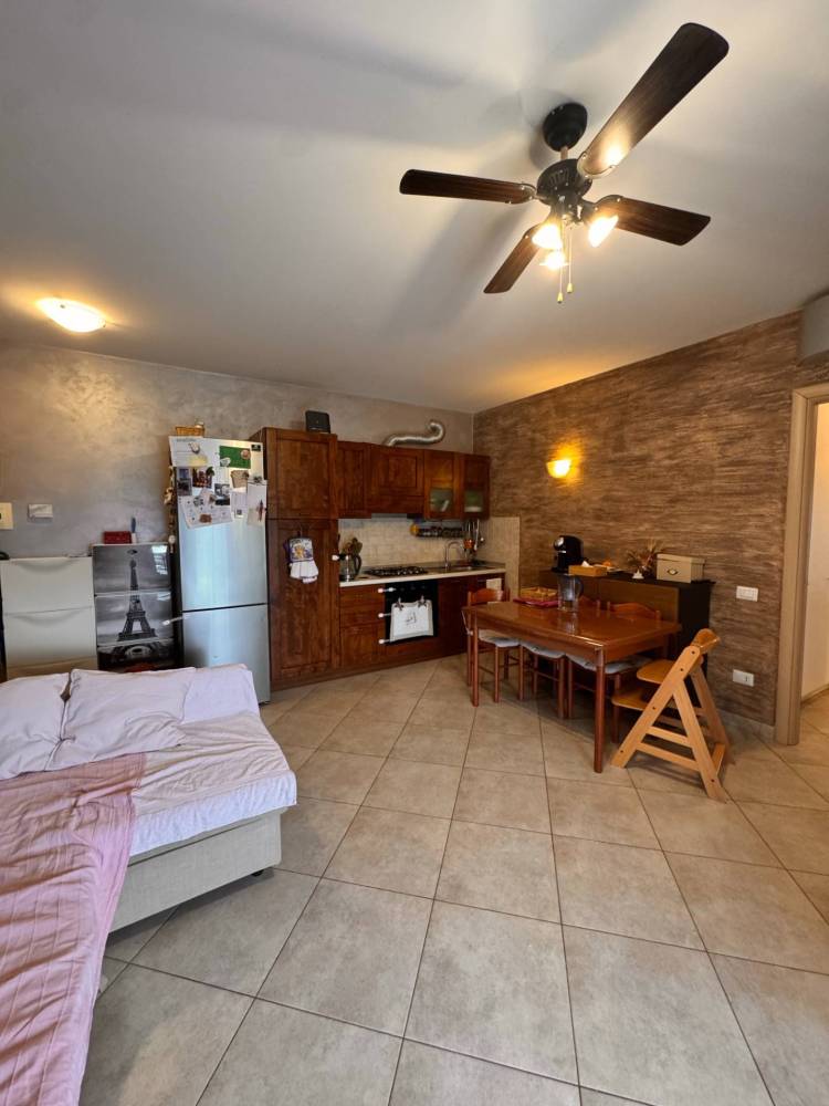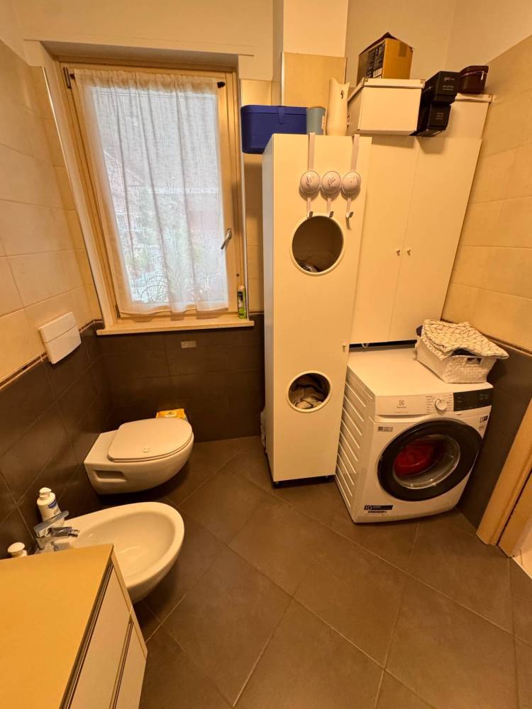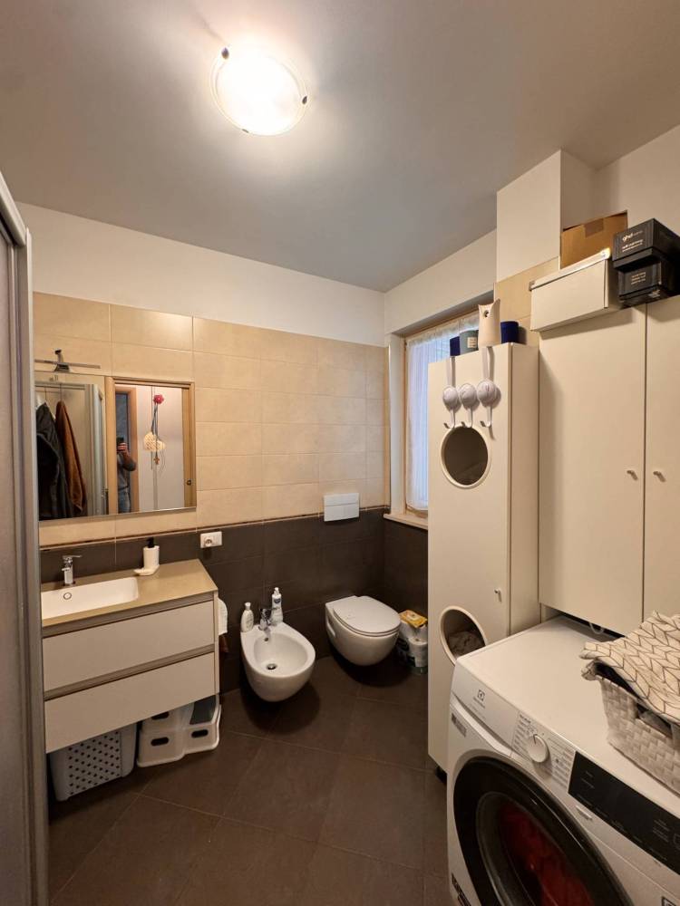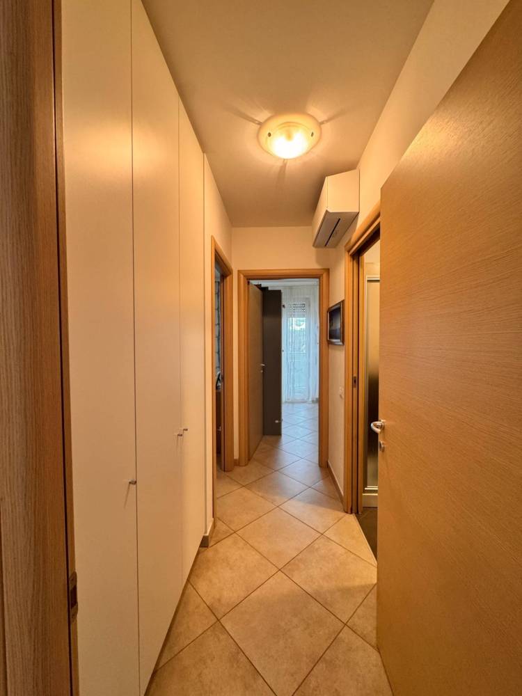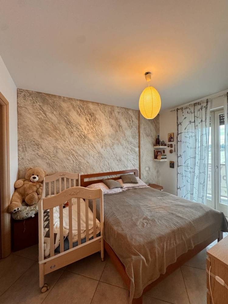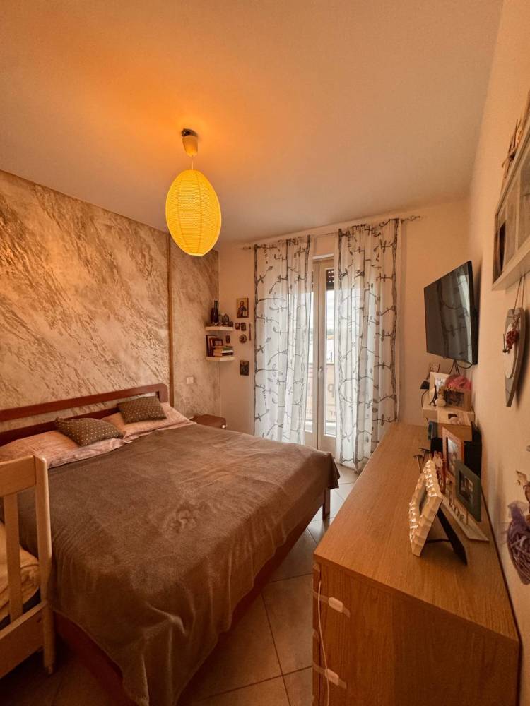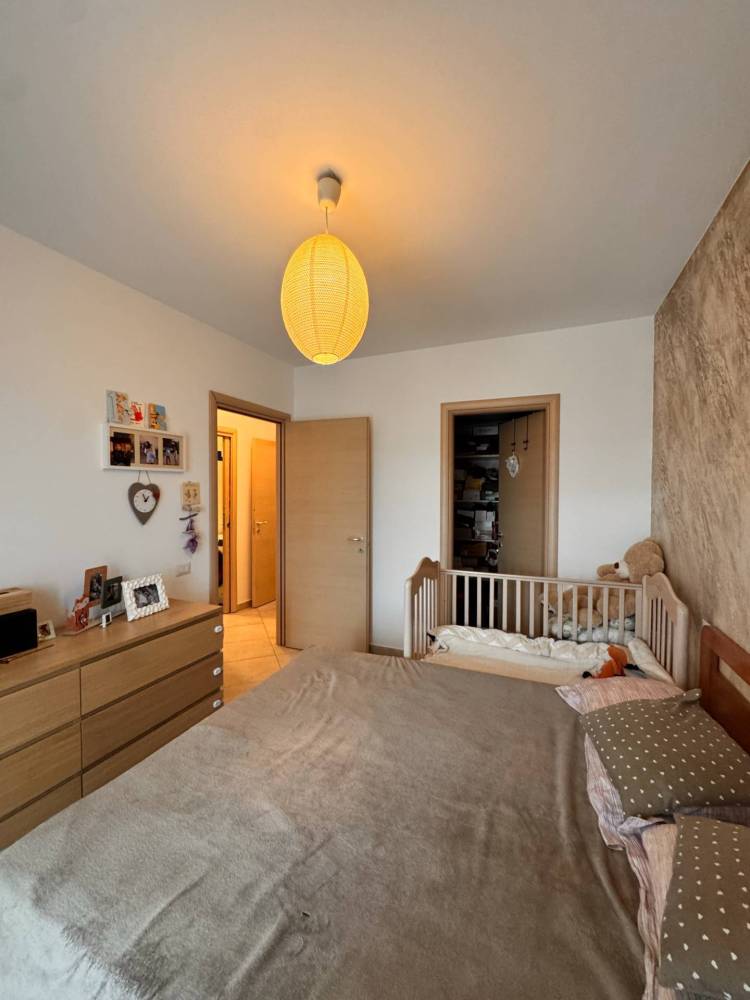Al suo interno troviamo un unico locale cucina/soggiorno con un grande finestrone scorrevole con accesso al terrazzo, reparto notte con due camere, di cui una matrimoniale con cabina armadio e una cameretta, entrambe comunicanti al balcone esterno, ed un bagno finestrato con doccia e idoneo spazio per la lavatrice.